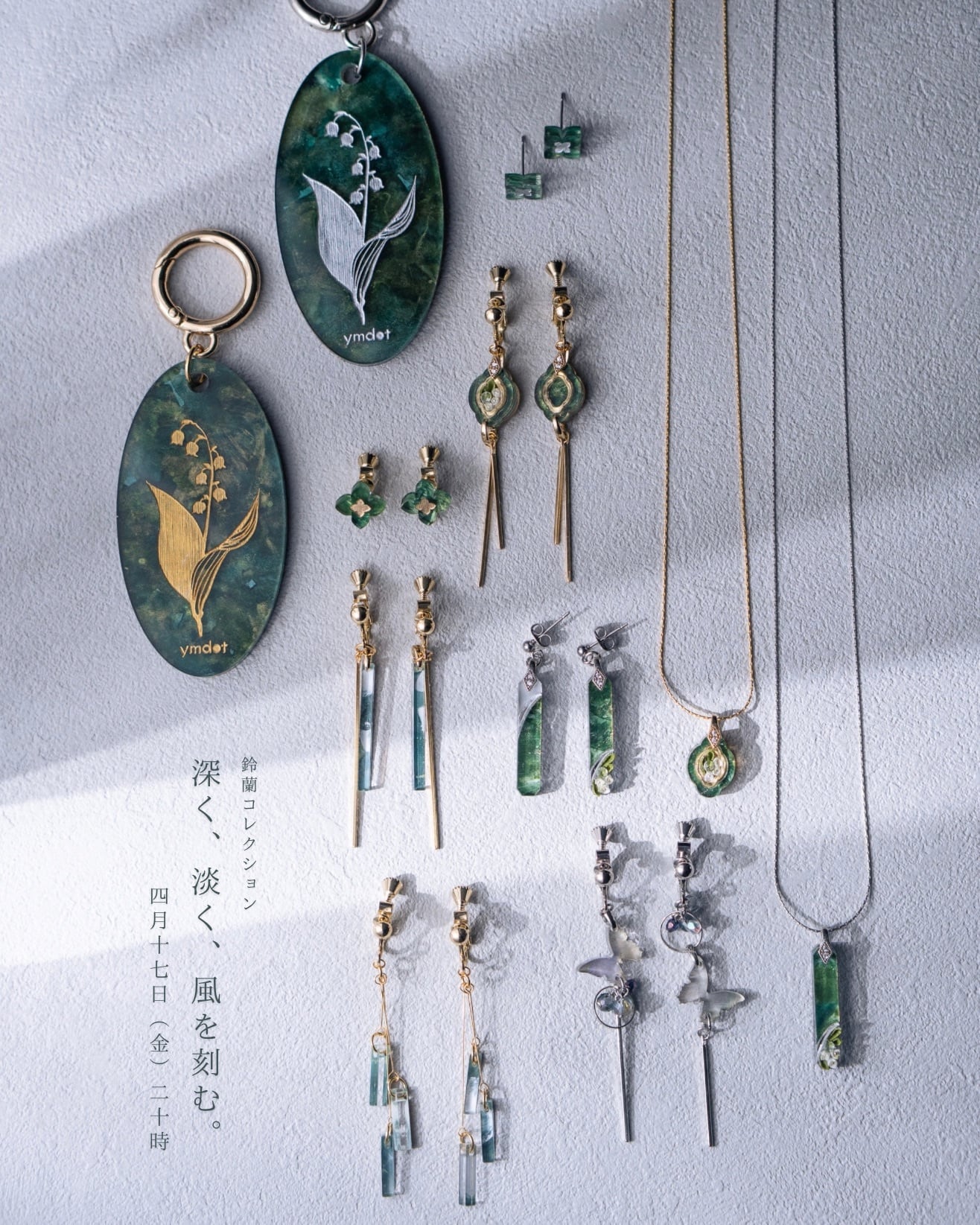 ymdotは、美しいと感じたものをかたちにしています。 身近にある景色や花、 心に残る言葉から生まれたアクセサリーが、 あなたの日常に、そっと寄り添えますように。