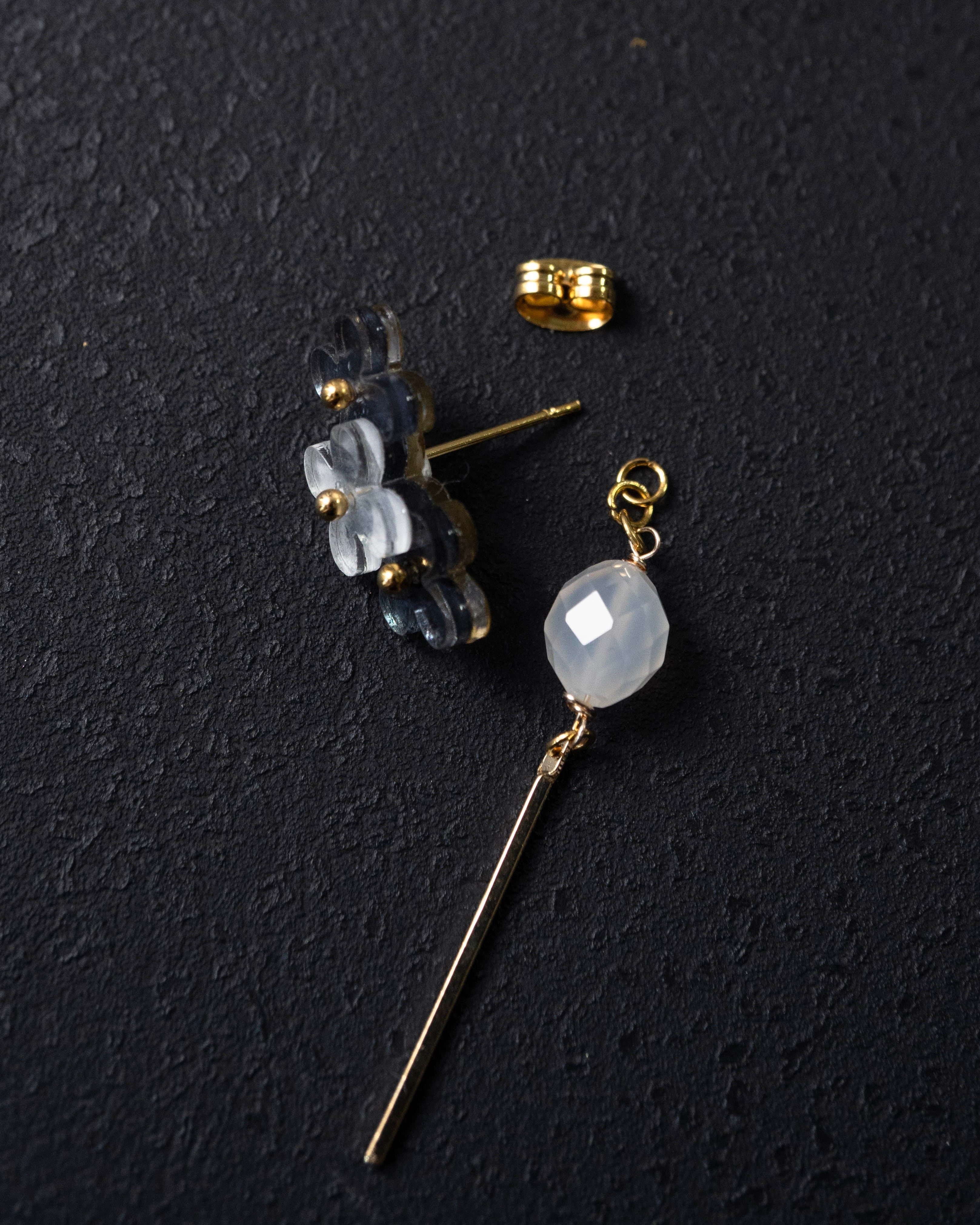 ピアスは2wayでホワイトカルセドニー+メタルバーを取り外してご着用することが可能です。