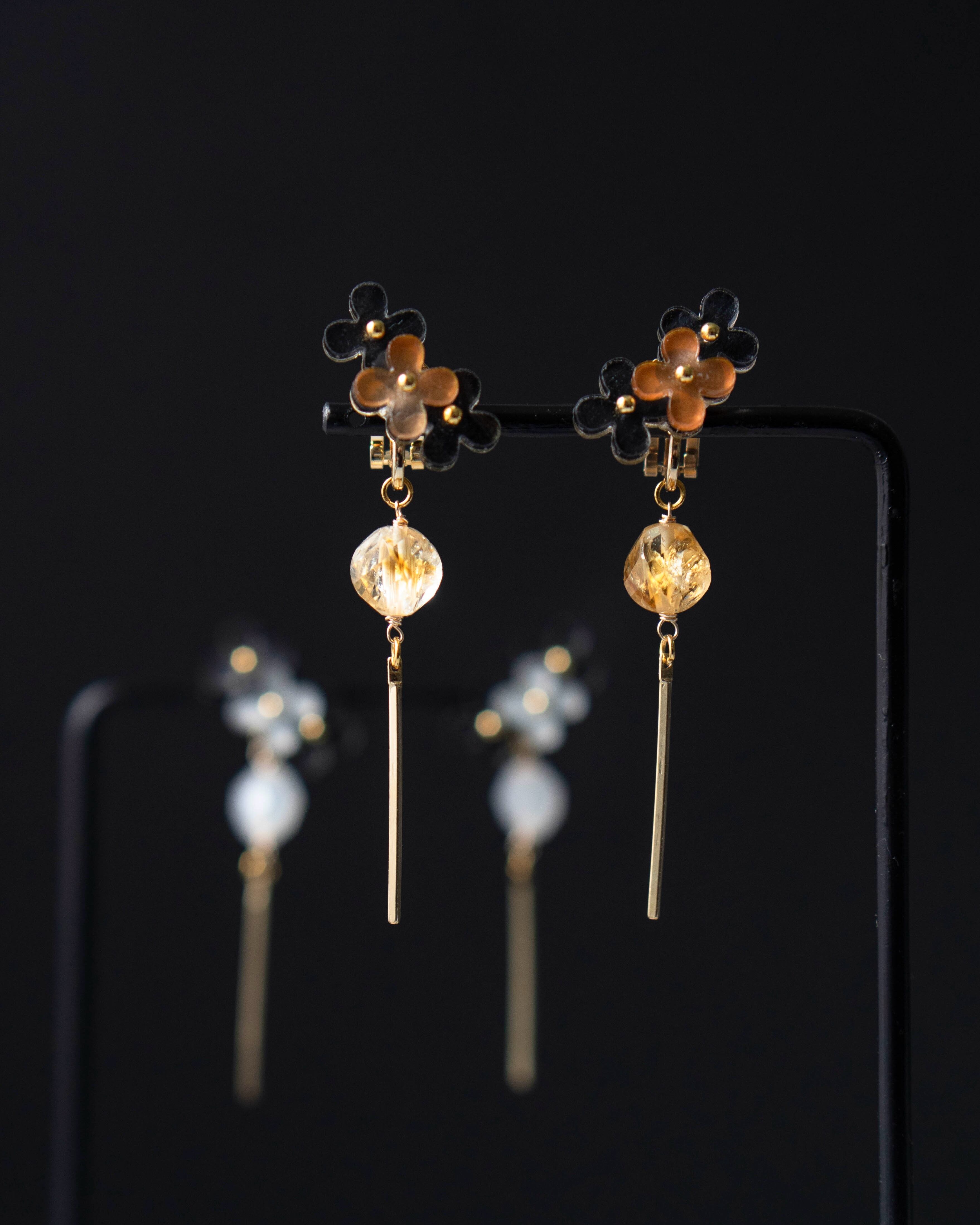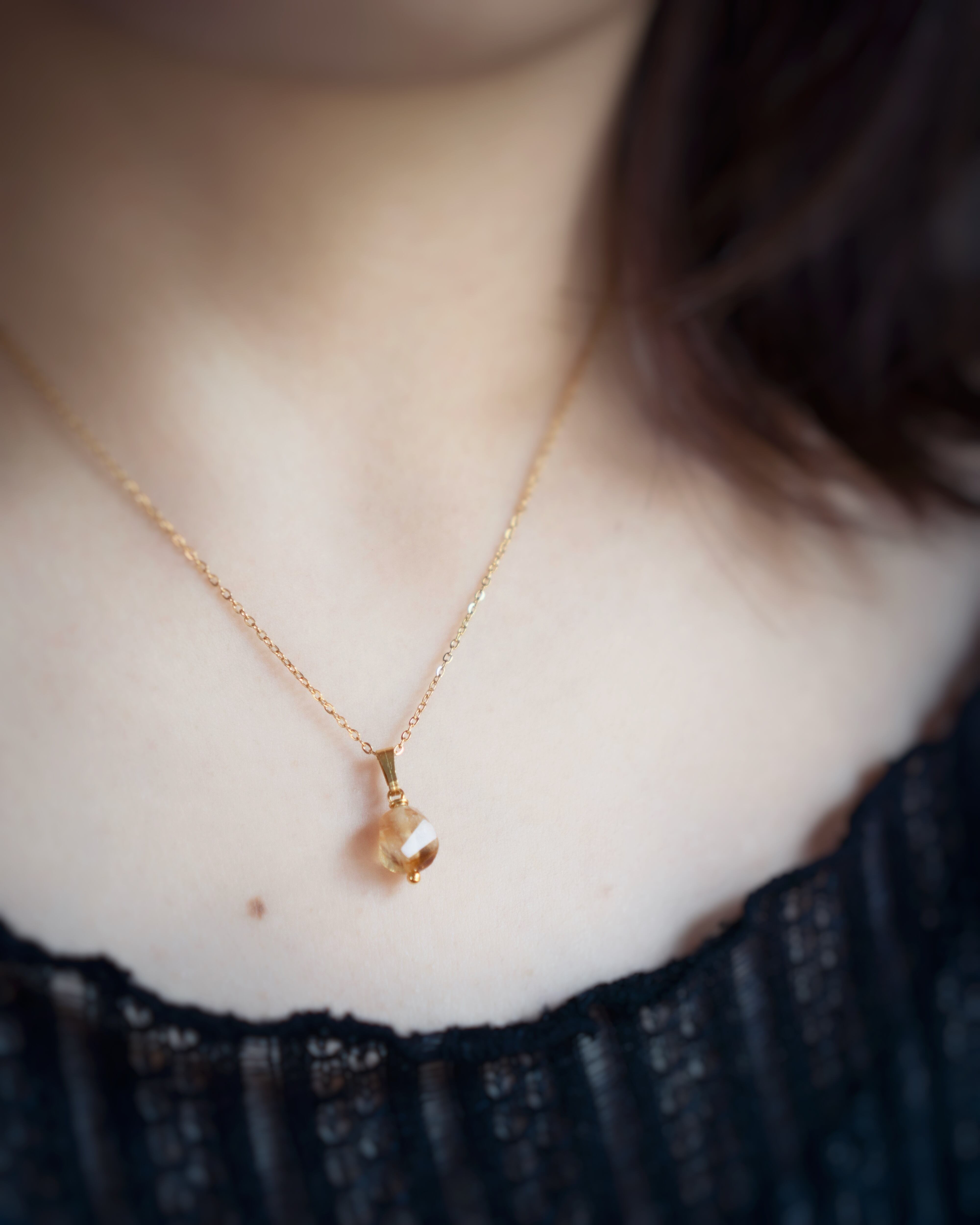 シンプルでありながらカットの入った天然石シトリンの煌めきが感じられるアイテムです。