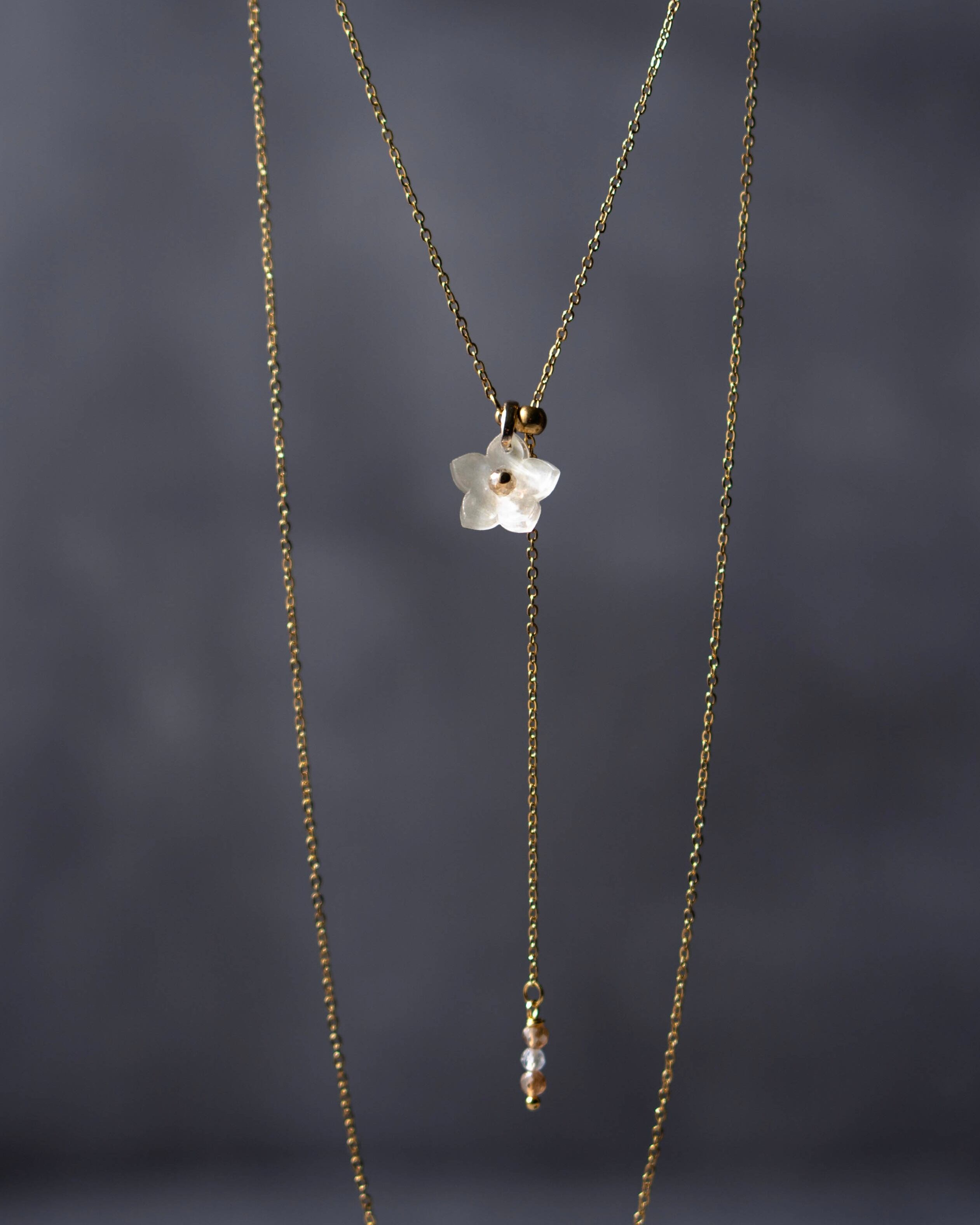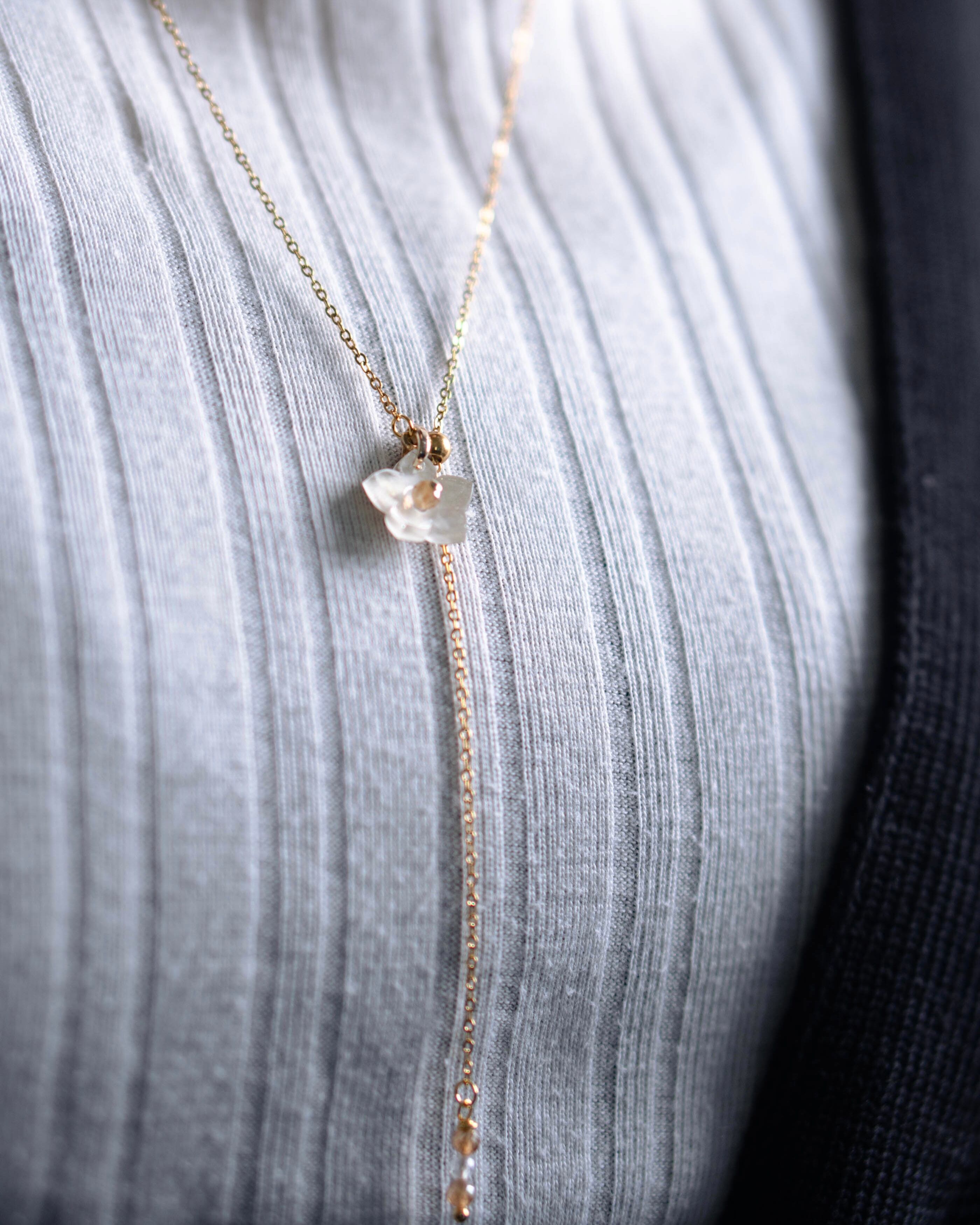 Yのシルエットをしたネックレスとなっており、長さもお手元で調節が可能です。