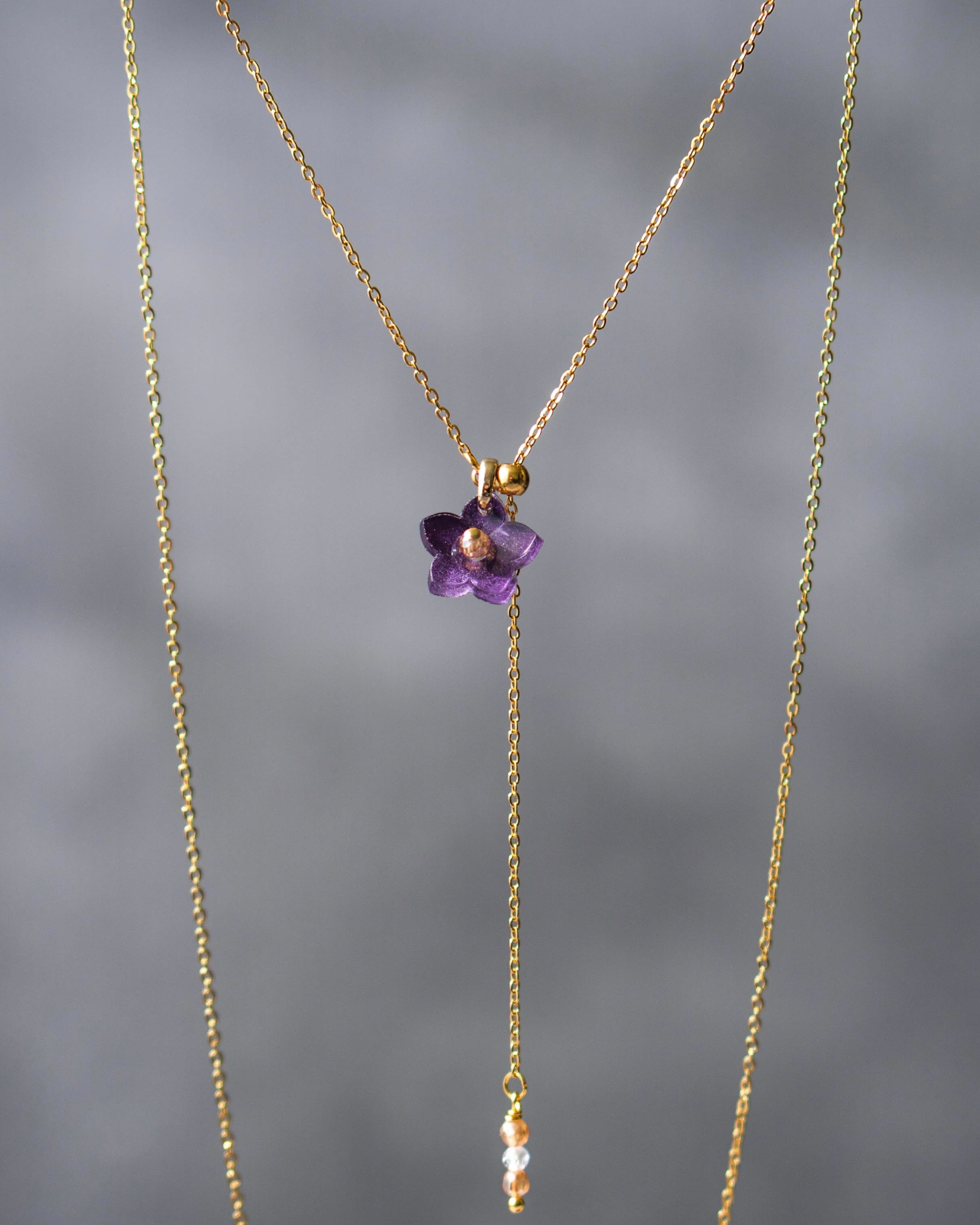Yのシルエットをしたネックレスとなっており、長さもお手元で調節が可能です。