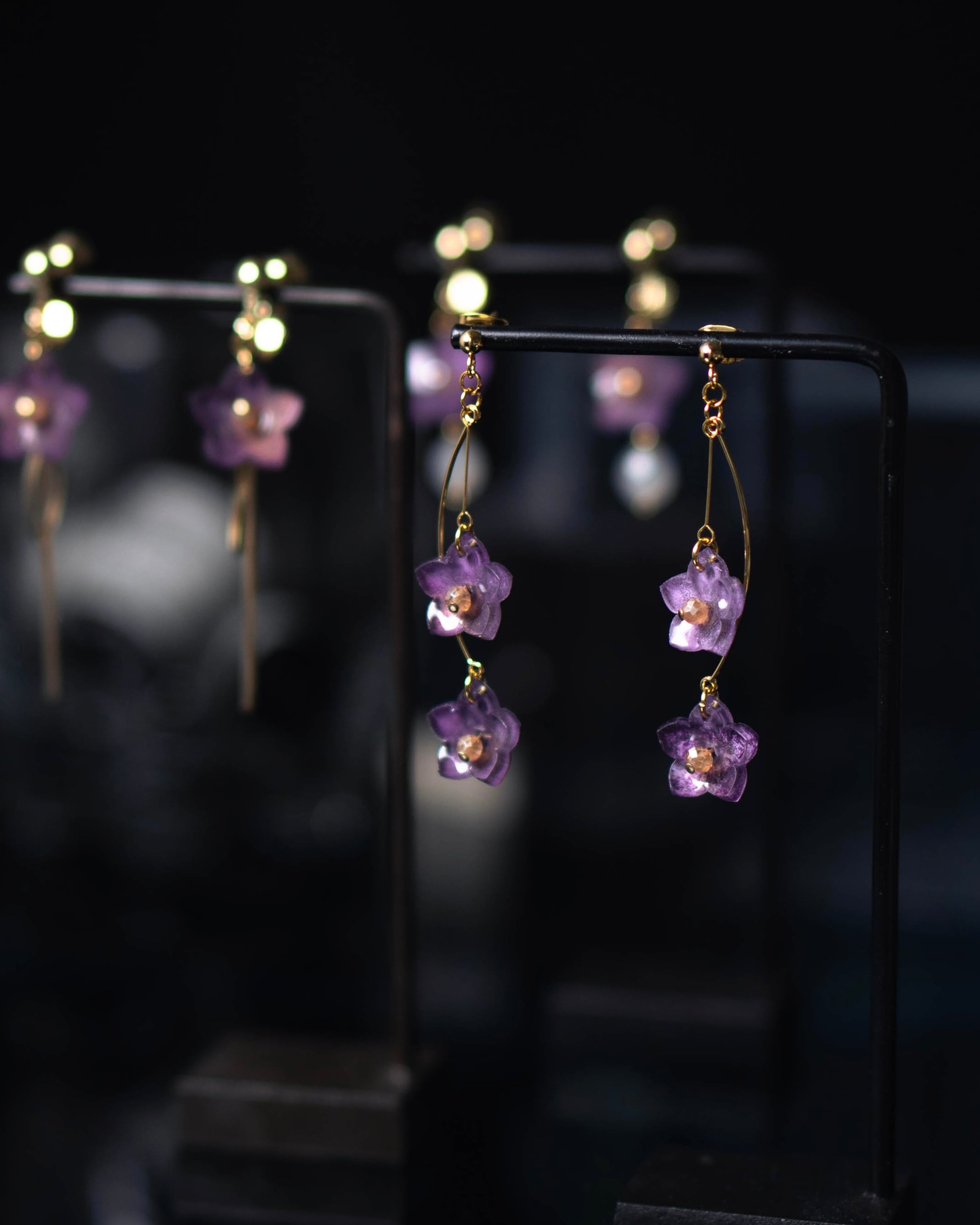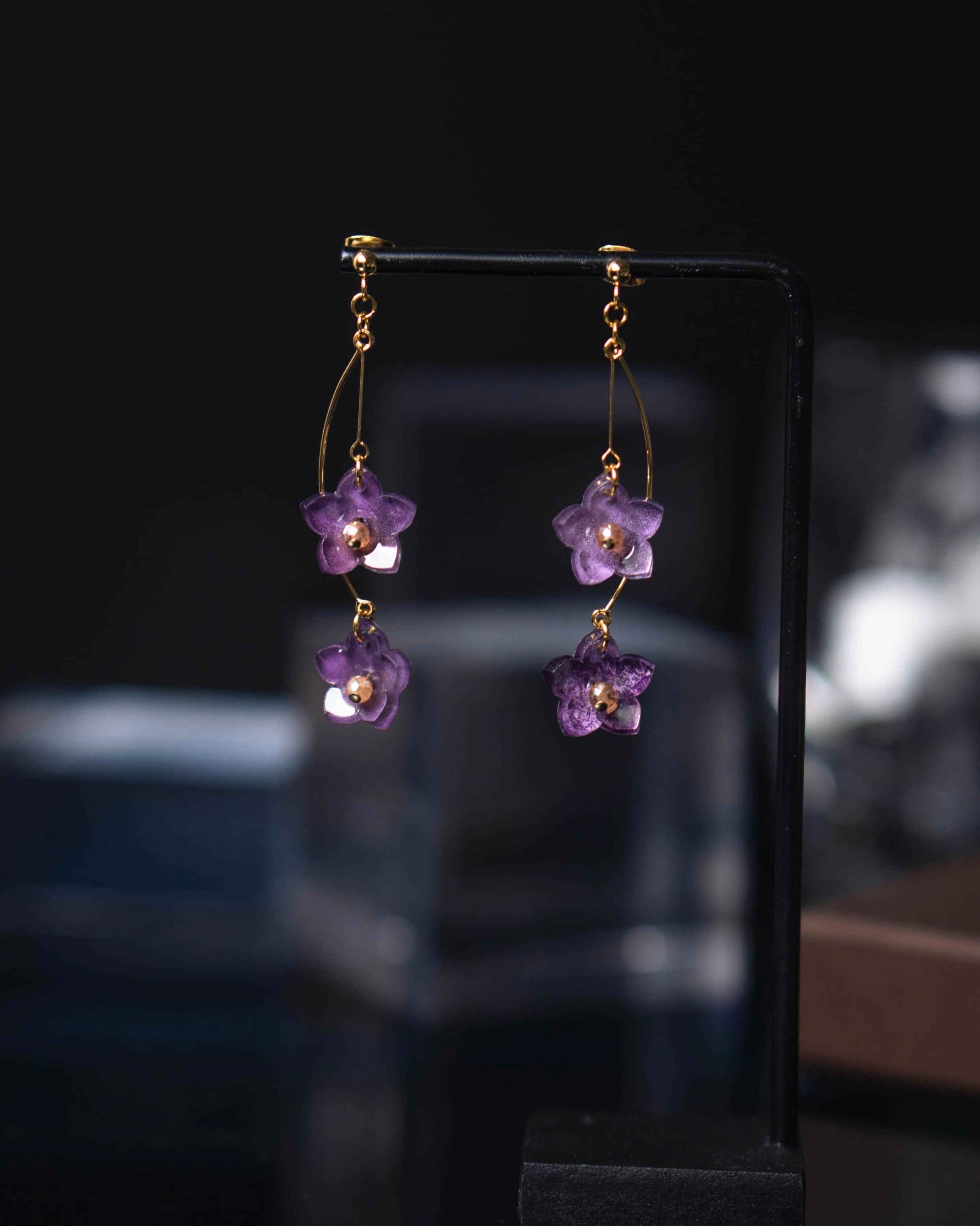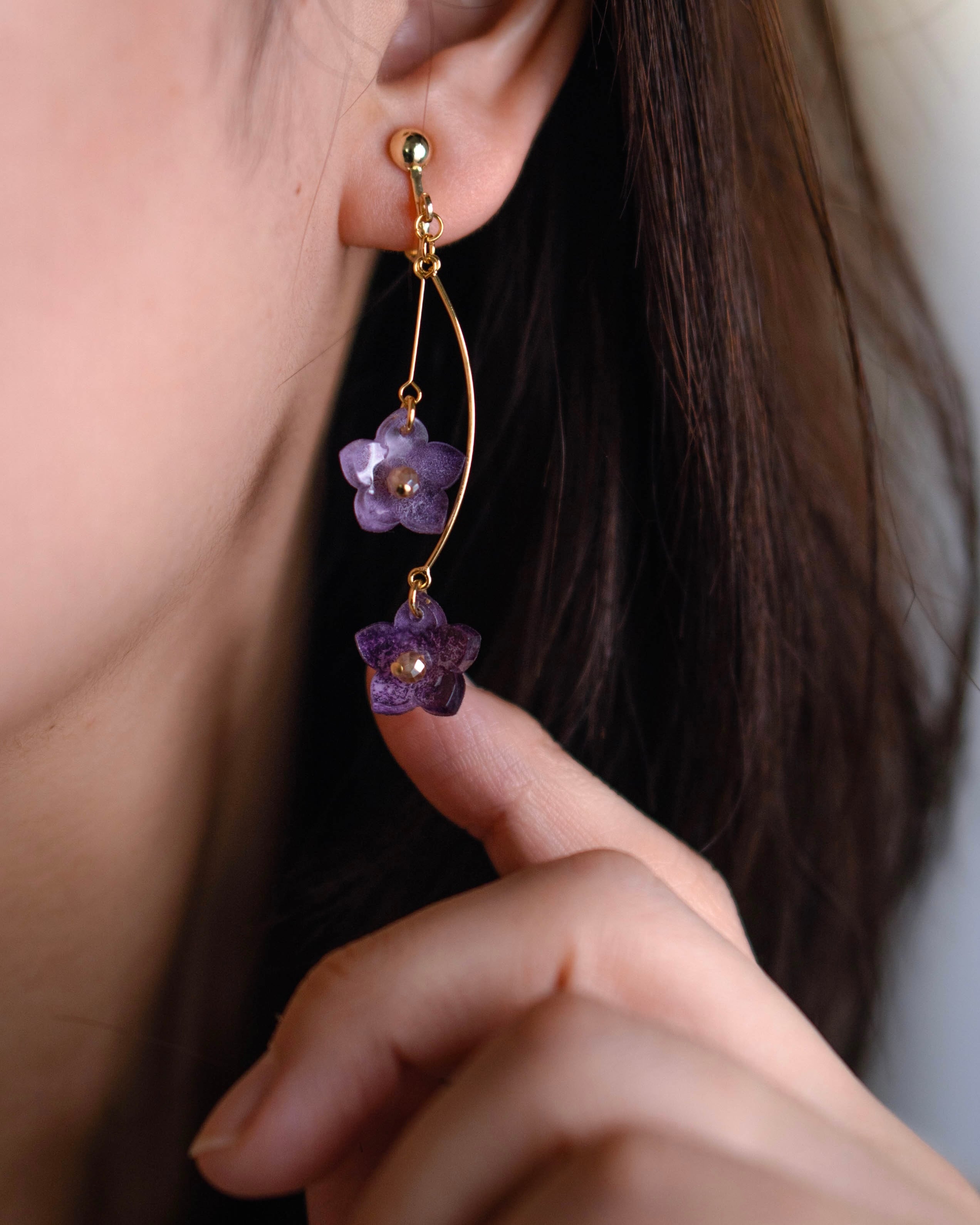 こちらは片耳に二輪の花が軽やかに揺れます。