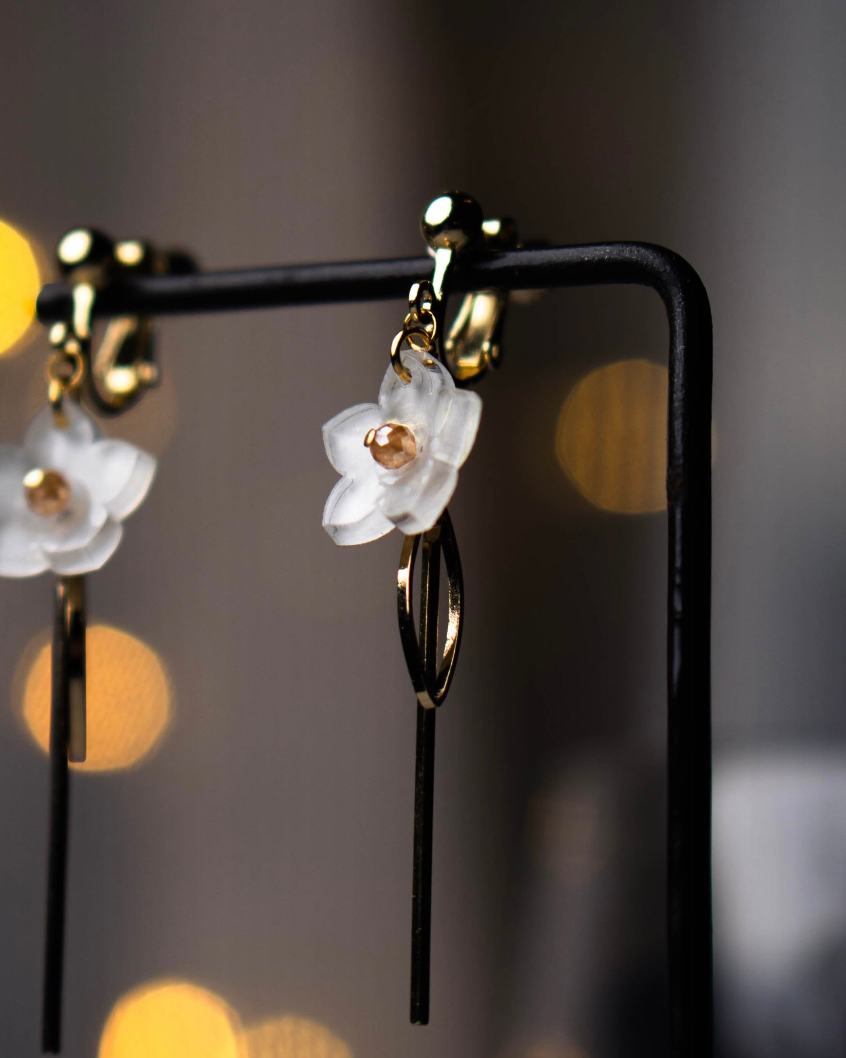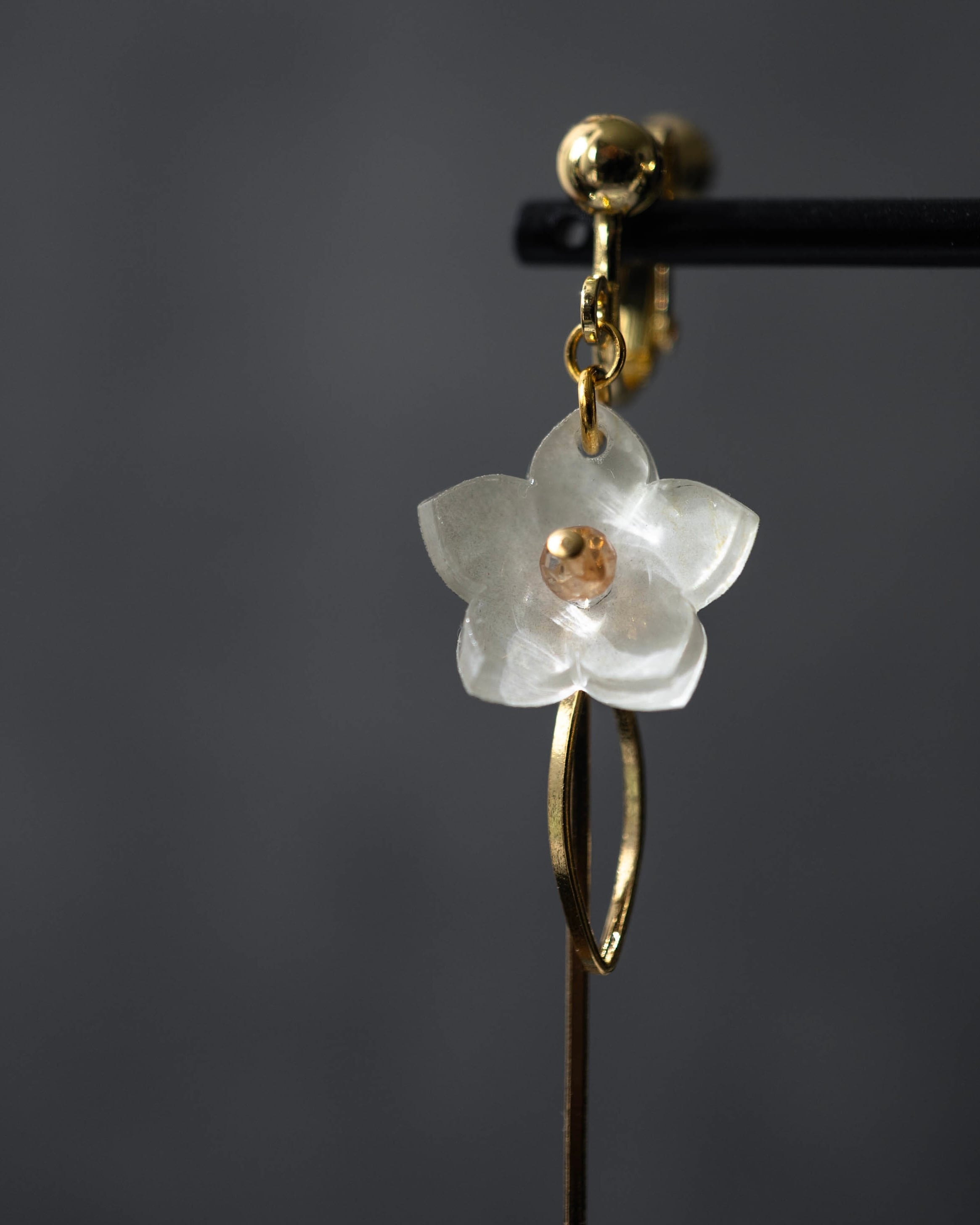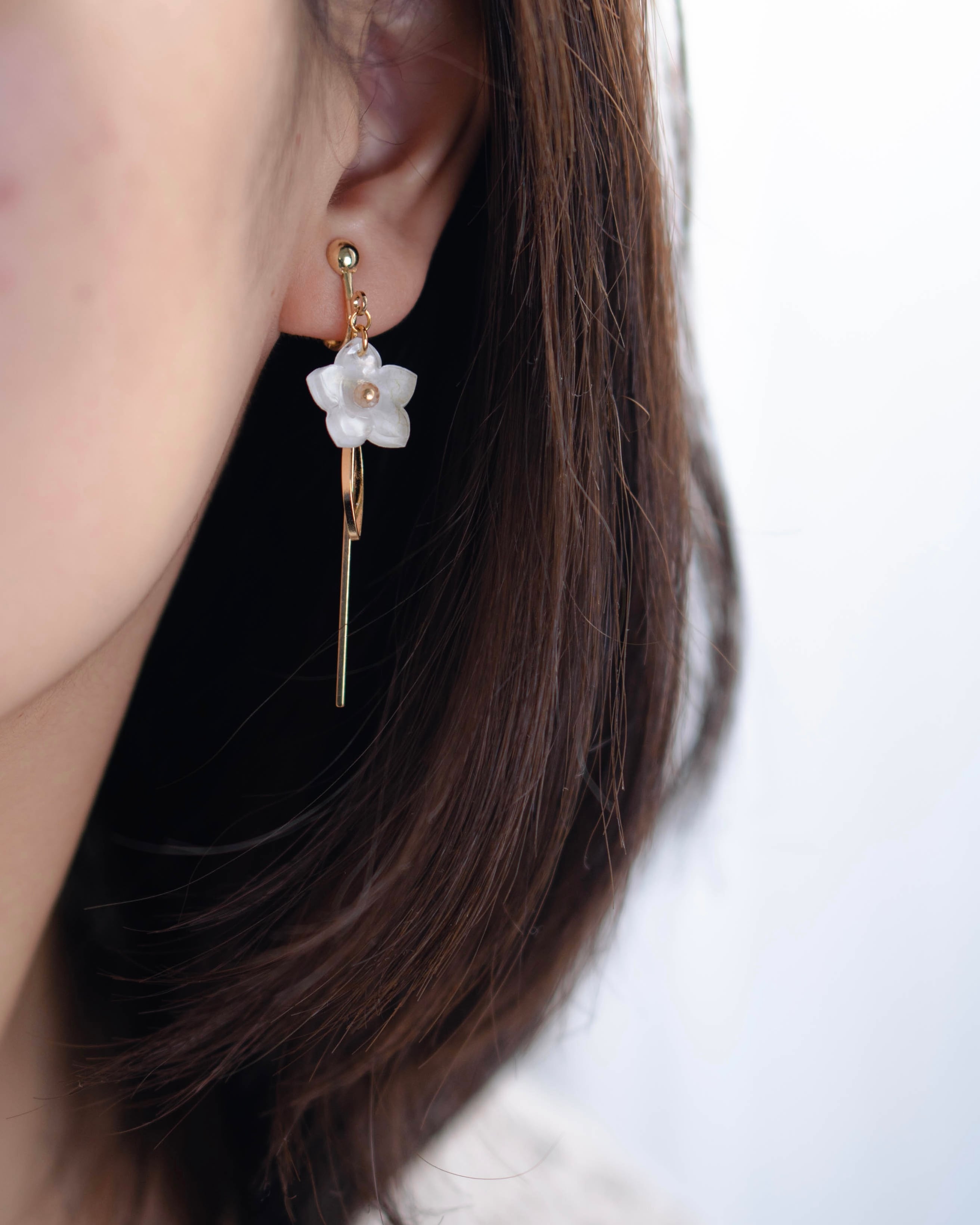 こちらは片耳に一輪の花がメタルバーとともに軽やかに揺れます。