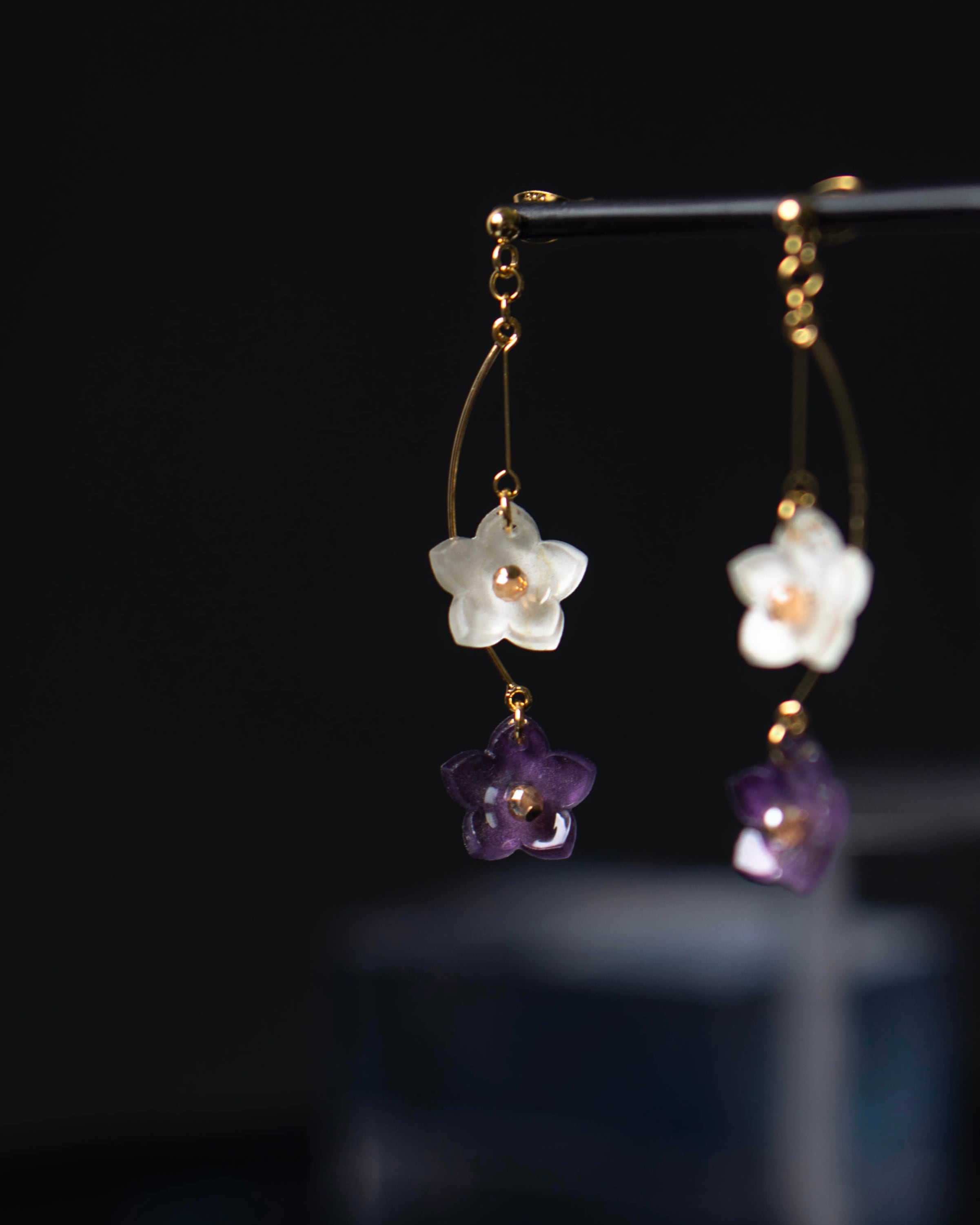 こちらは片耳に二輪の花が軽やかに揺れます。