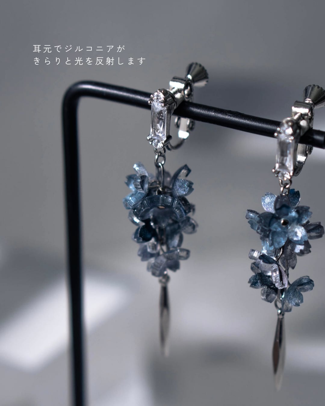 片耳に8輪もの花が咲き誇り、耳元がぱっと華やかになります。