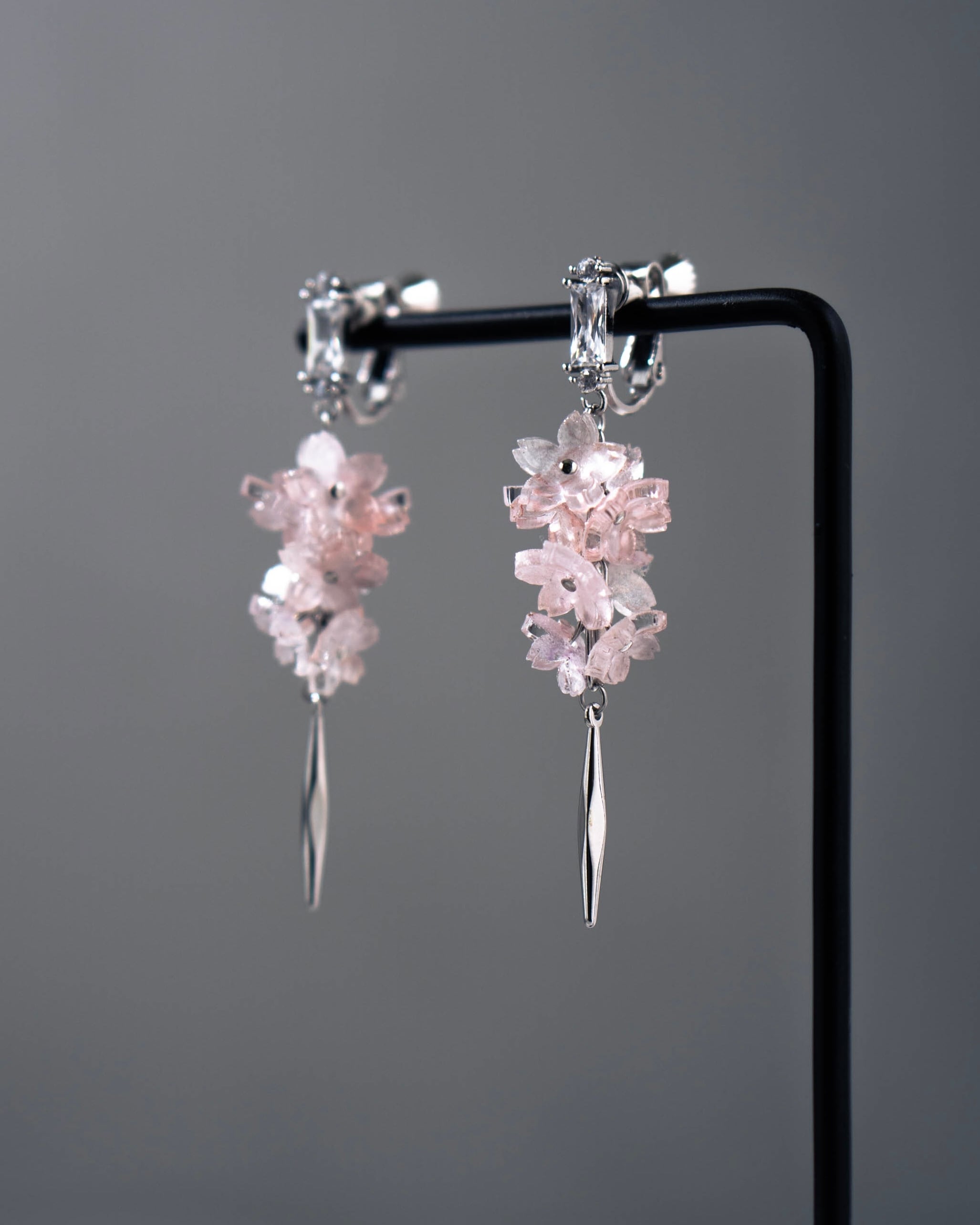 片耳に8輪もの花が咲き誇り、耳元がぱっと華やかになります。