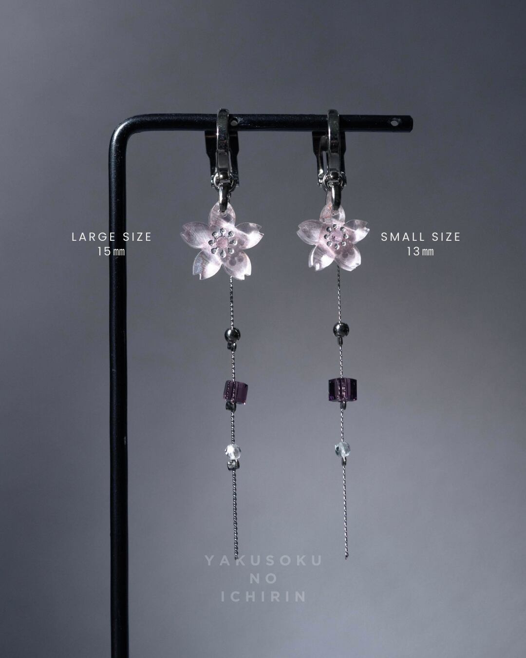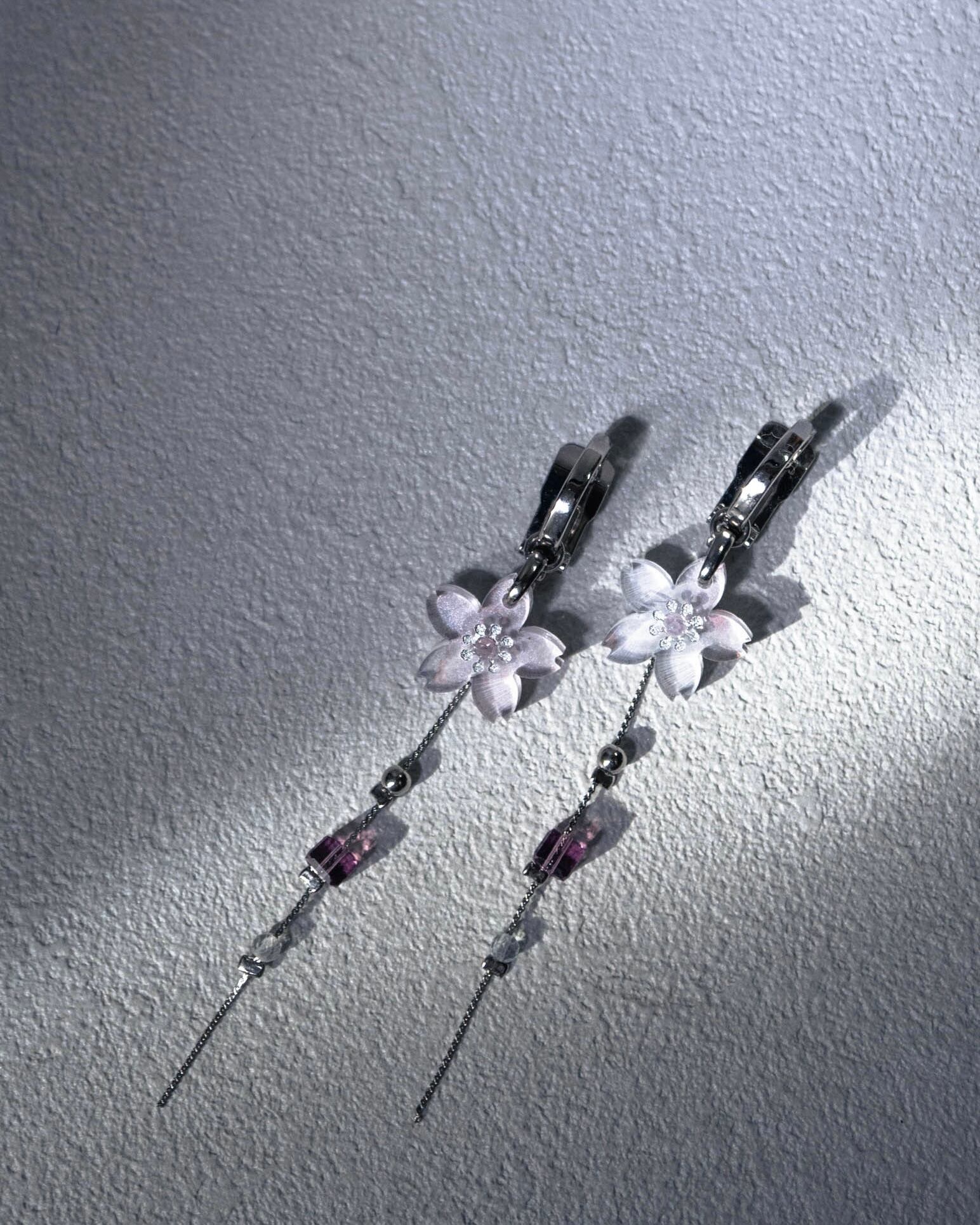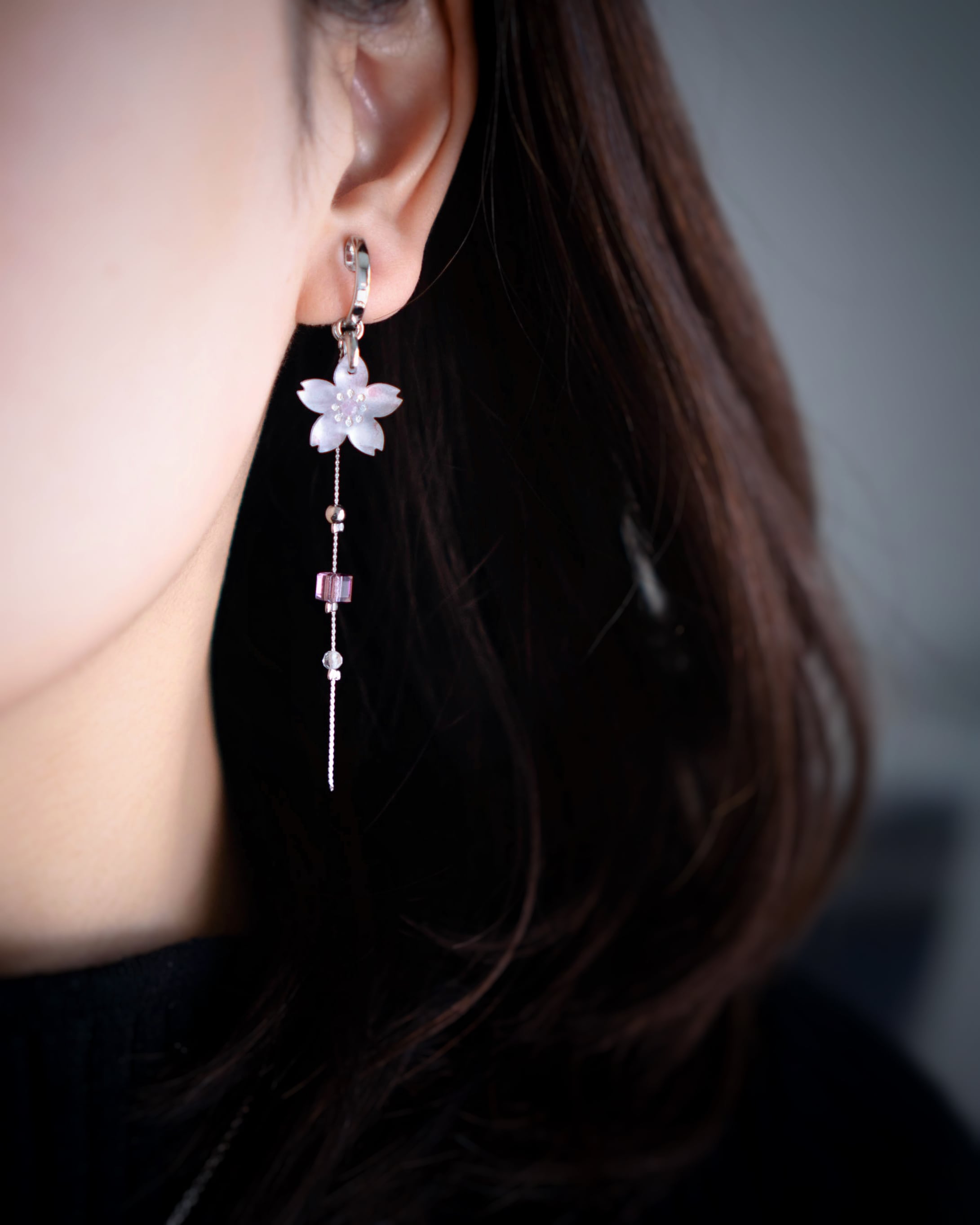 こちらの耳飾りは桜とチェーンのデザインとなります。