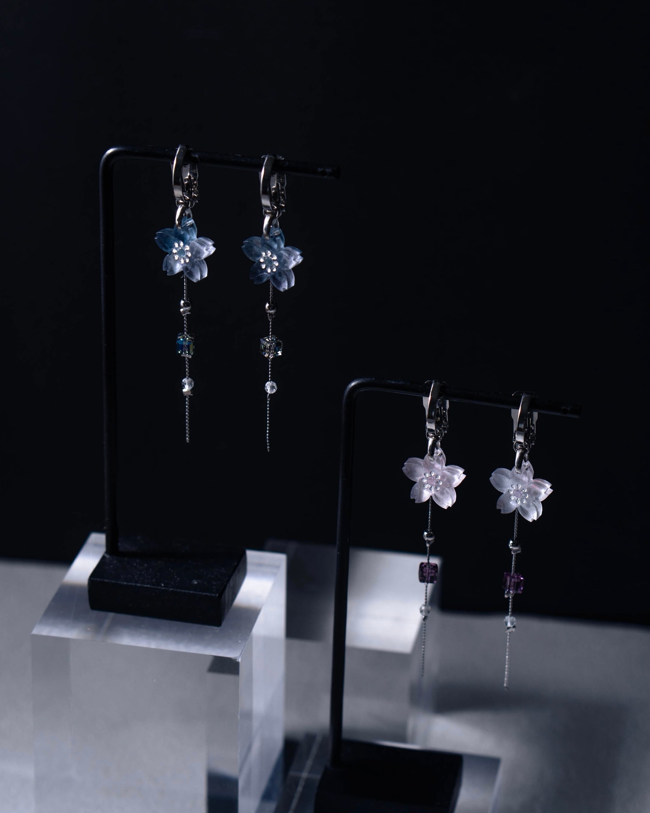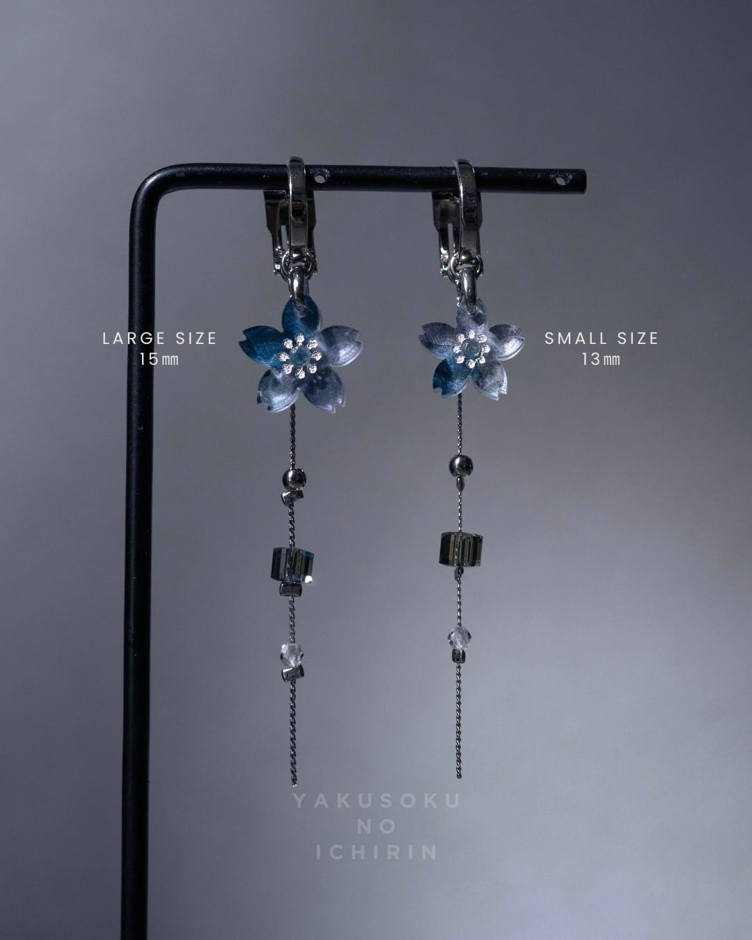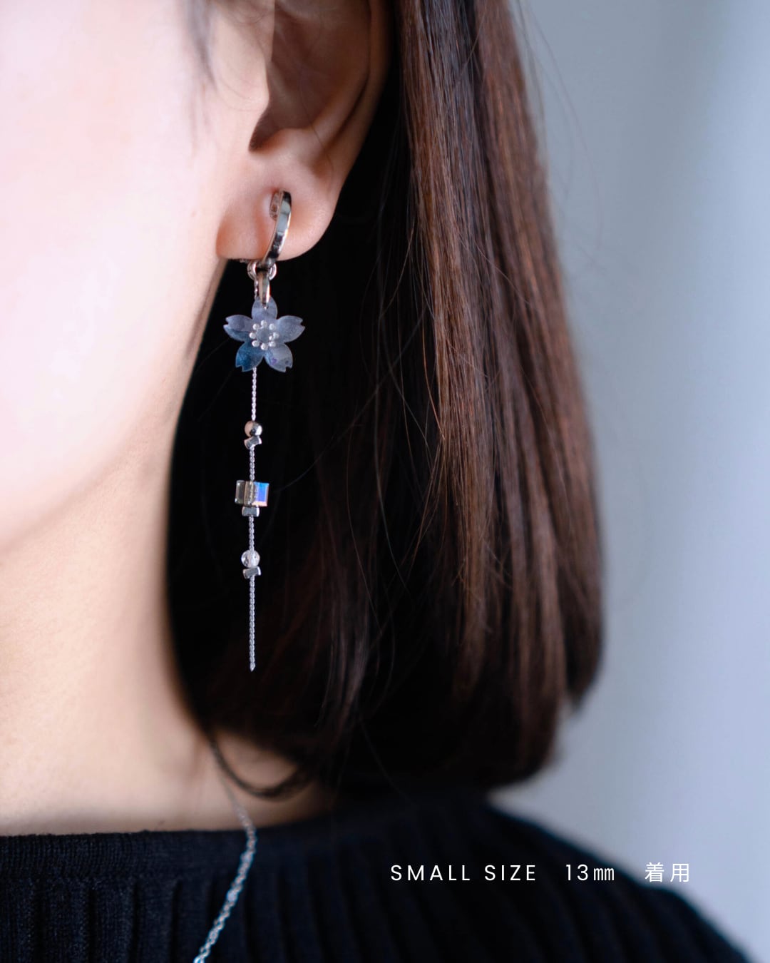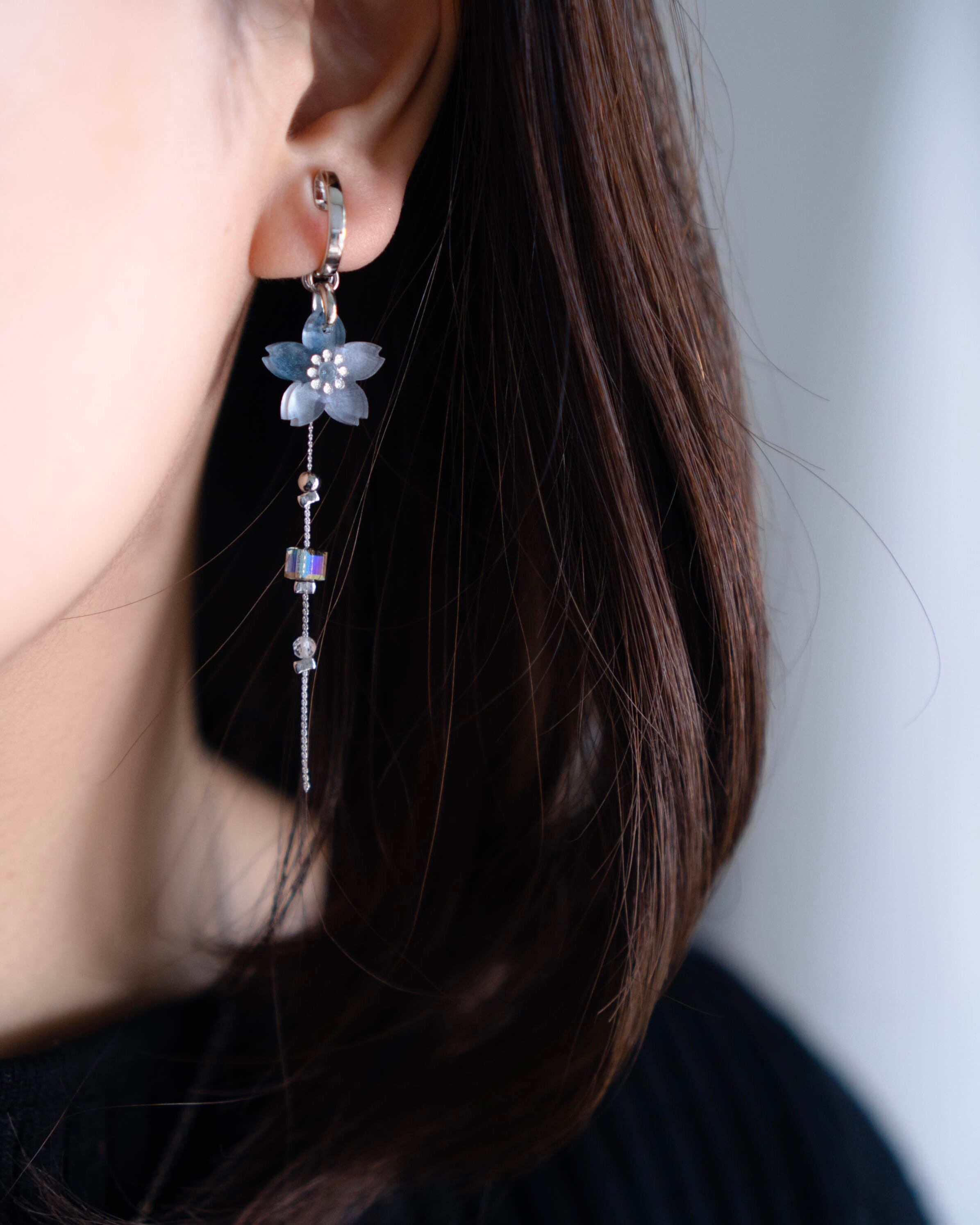 こちらの耳飾りは桜とチェーンのデザインとなります。