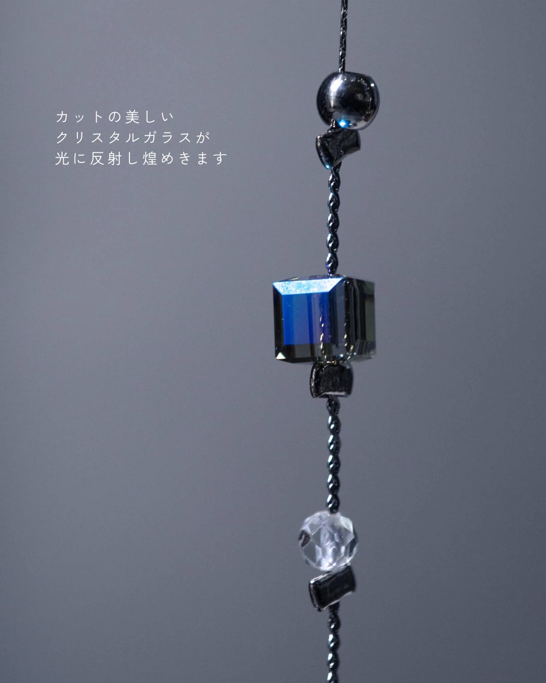 material:アクリル、ロンドンブルートパーズ、レジン(裏面)、真鍮、クリスタルガラス、サージカルステンレス、クォーツ