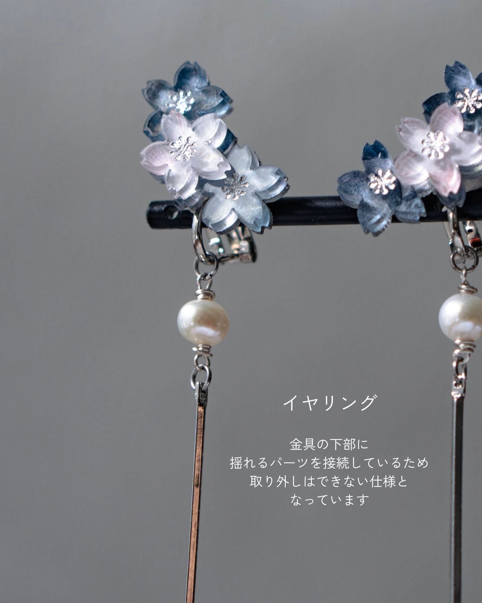 揺れる淡水パールは高品質なものを使用し、柔らかな光の反射を楽しんでいただけます。