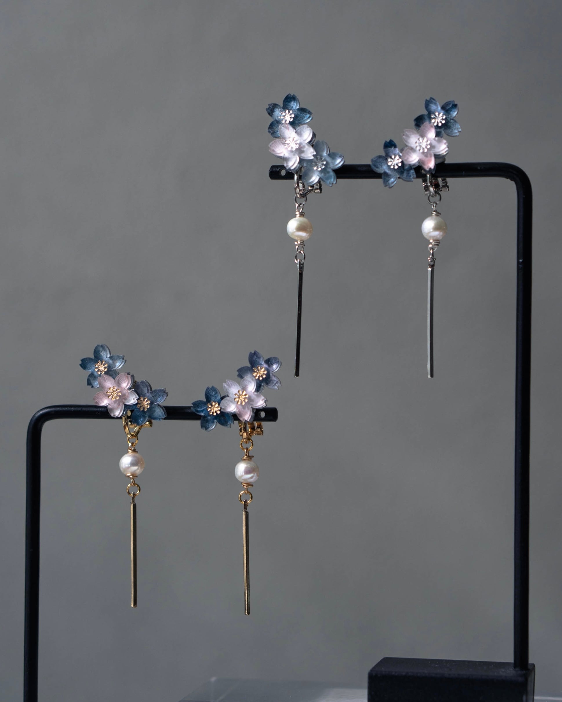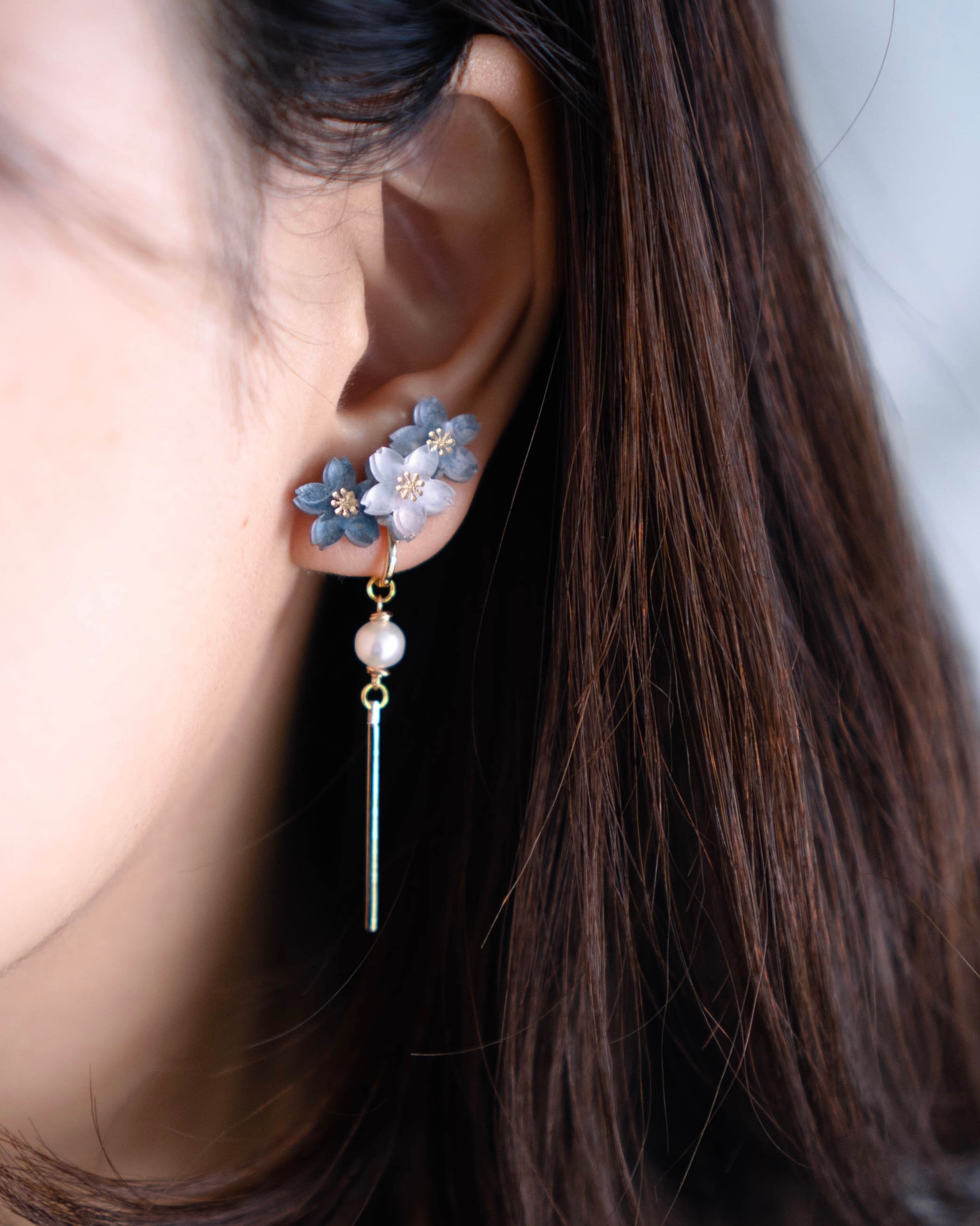 一度に二つの時を身にまとうことのできる耳飾りとなっています。