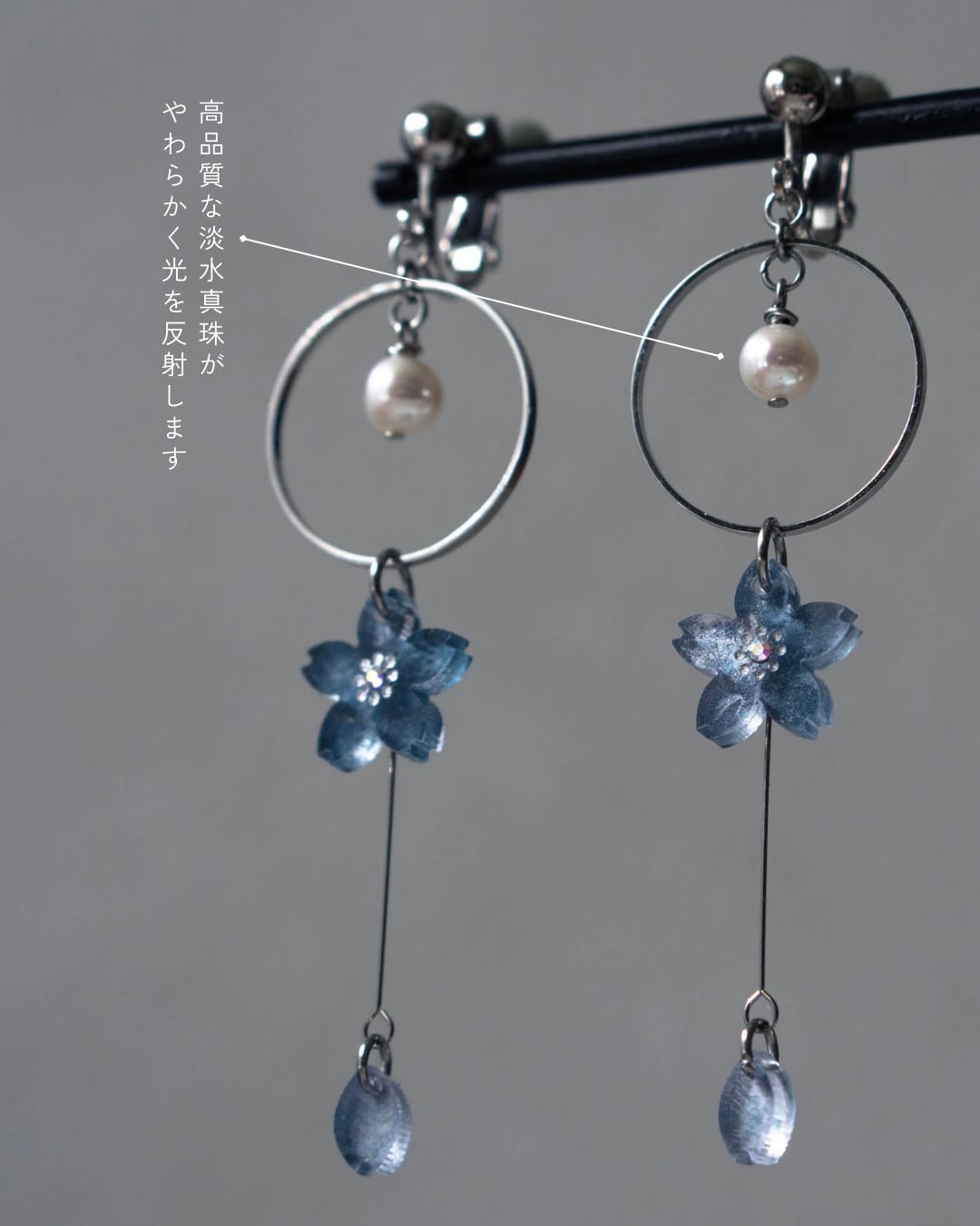 優しい色合いの桜を表現すべく2026あらたに登場した桜色の耳飾り。