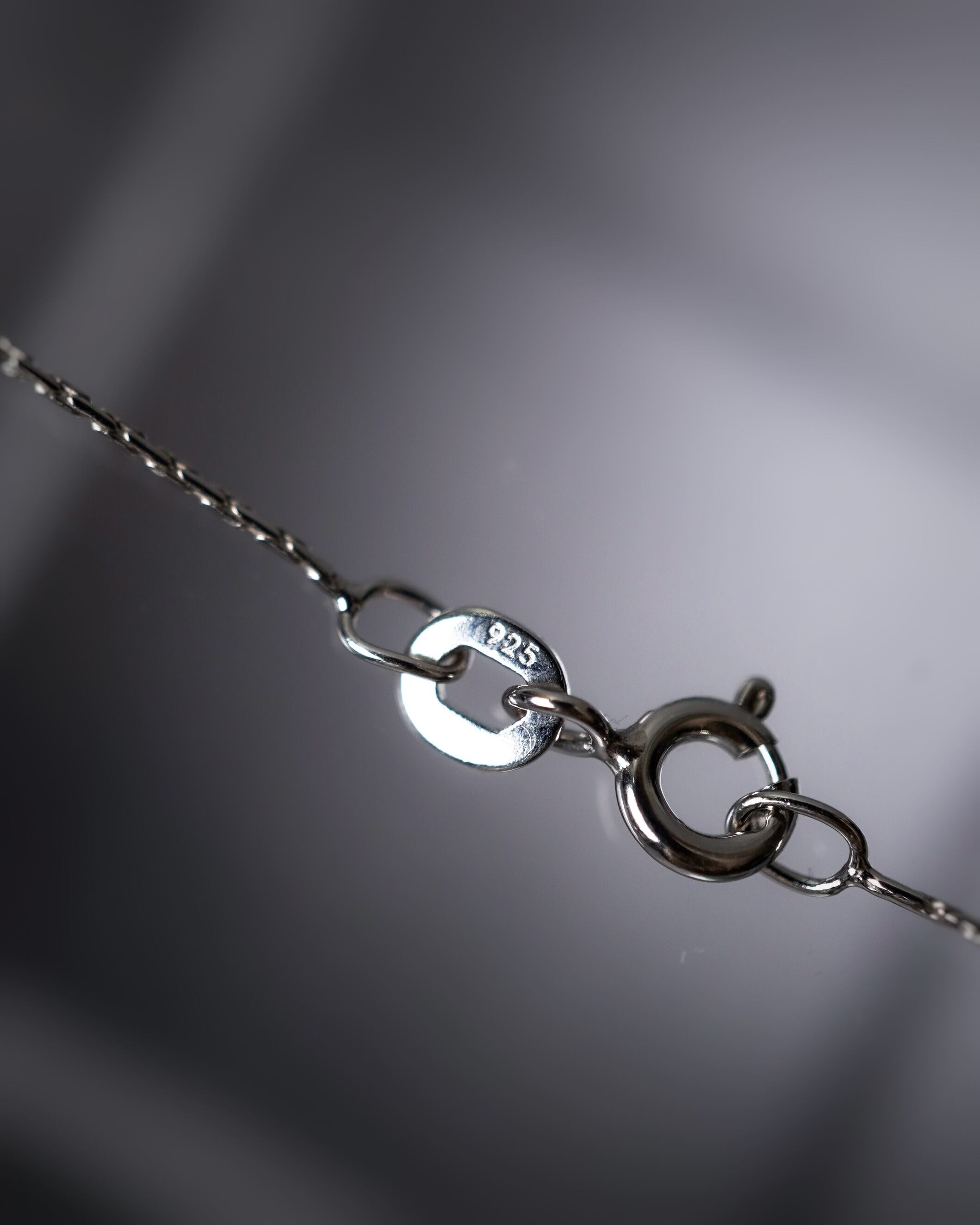 ※オプションよりサージカルステンレス素材への変更も可能です。サージカルステンレスチェーンの場合、チェーンが少し太めになるのと、留め具のあたりが異なります。(画像参照)