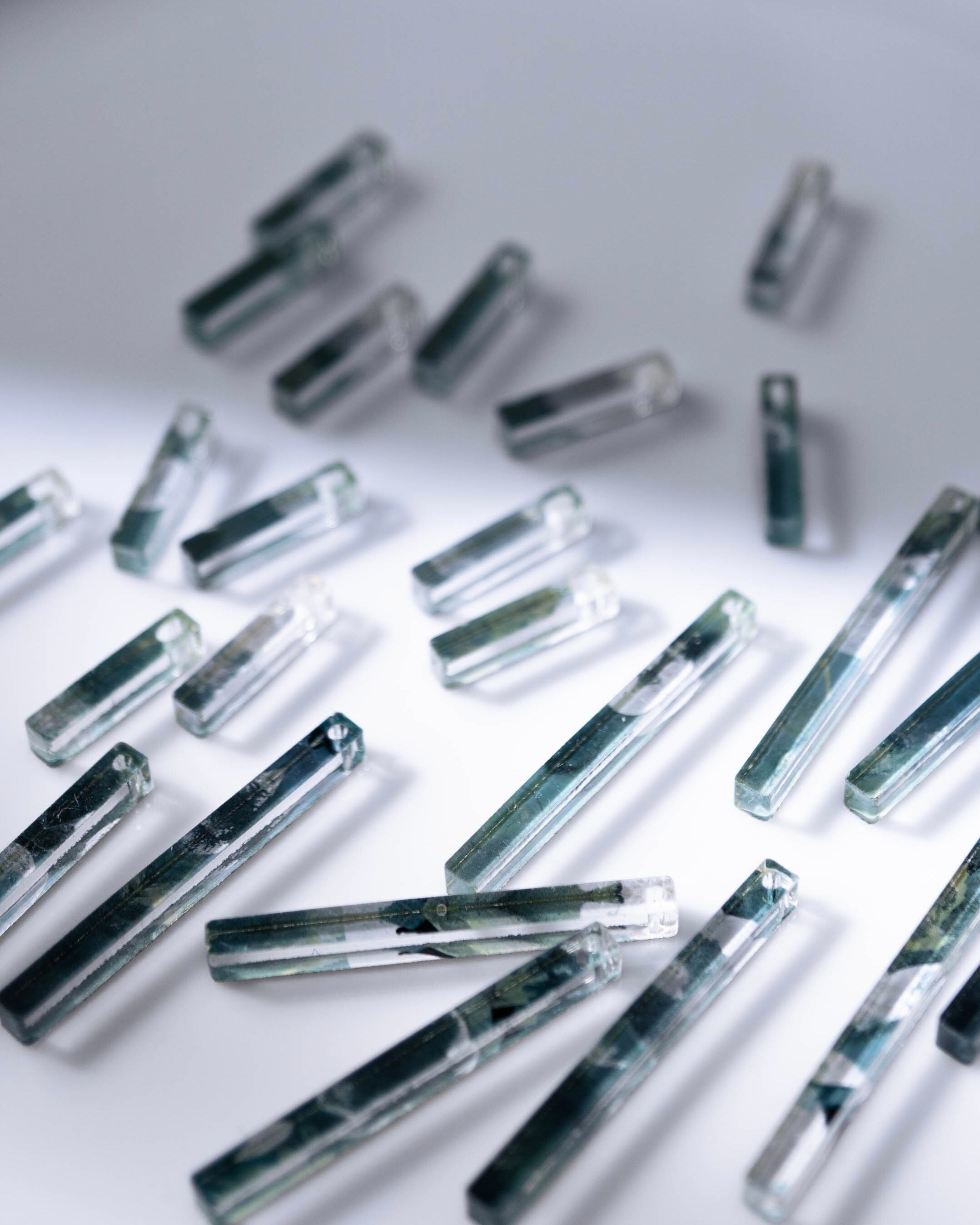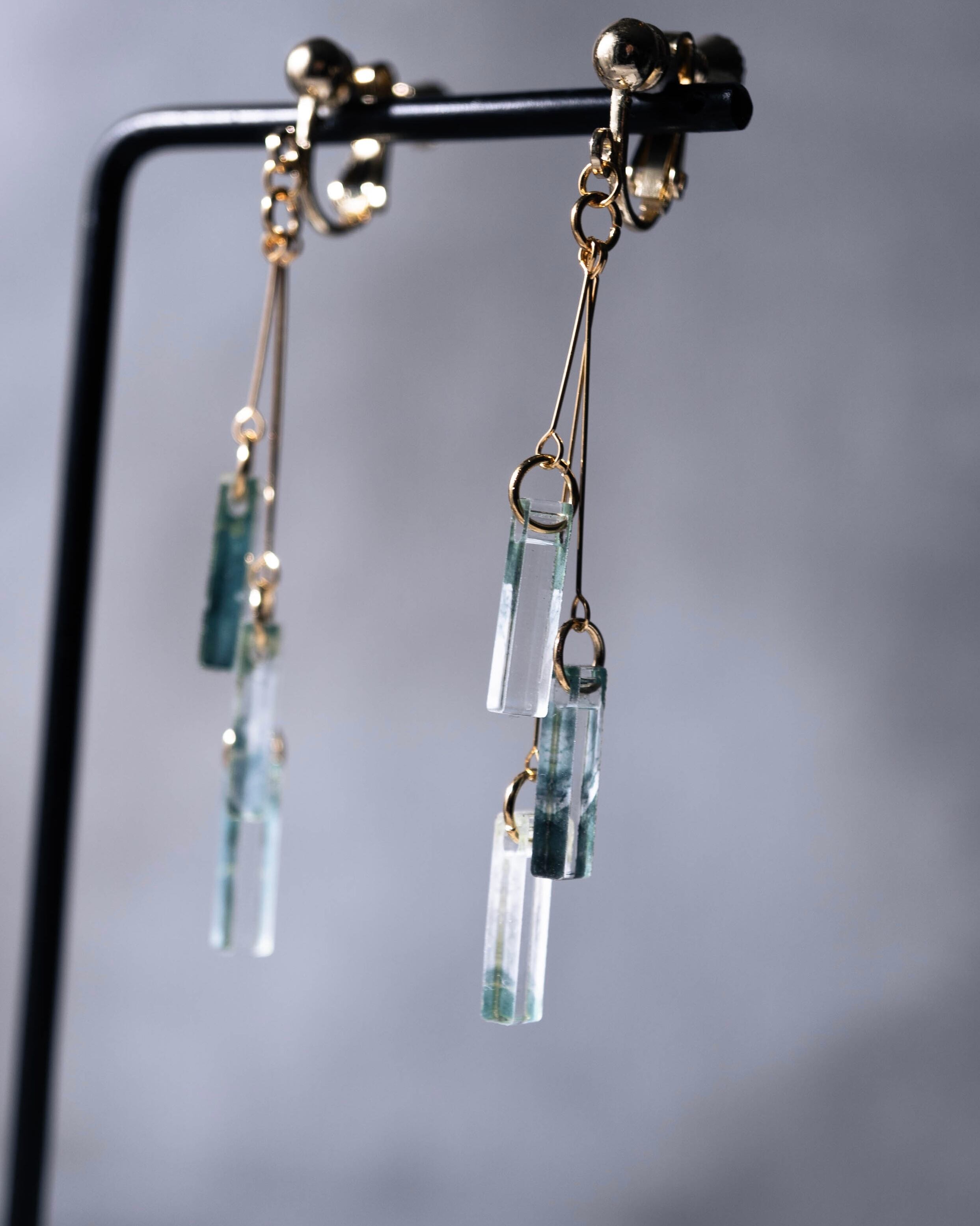 鈴蘭の色を落とし込んだアクリルが3連になり重なり合うシンプルかつ独創的なデザイン。