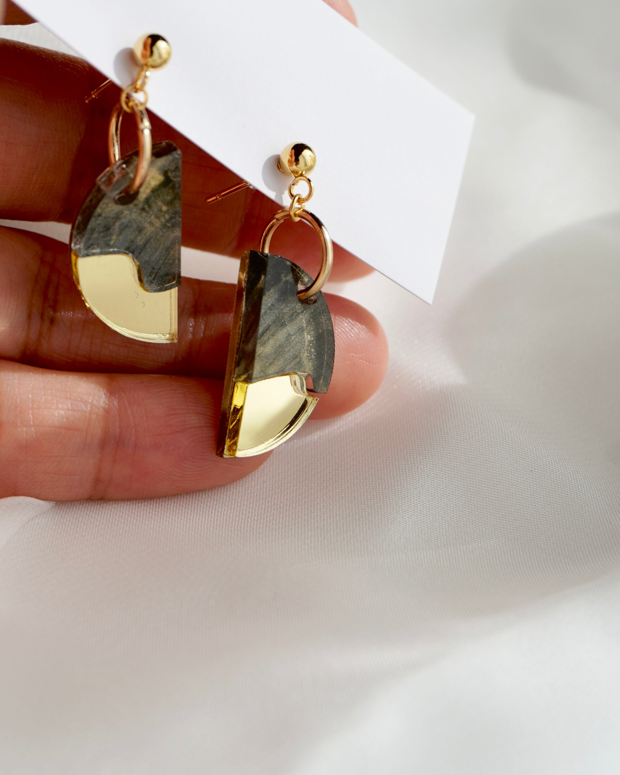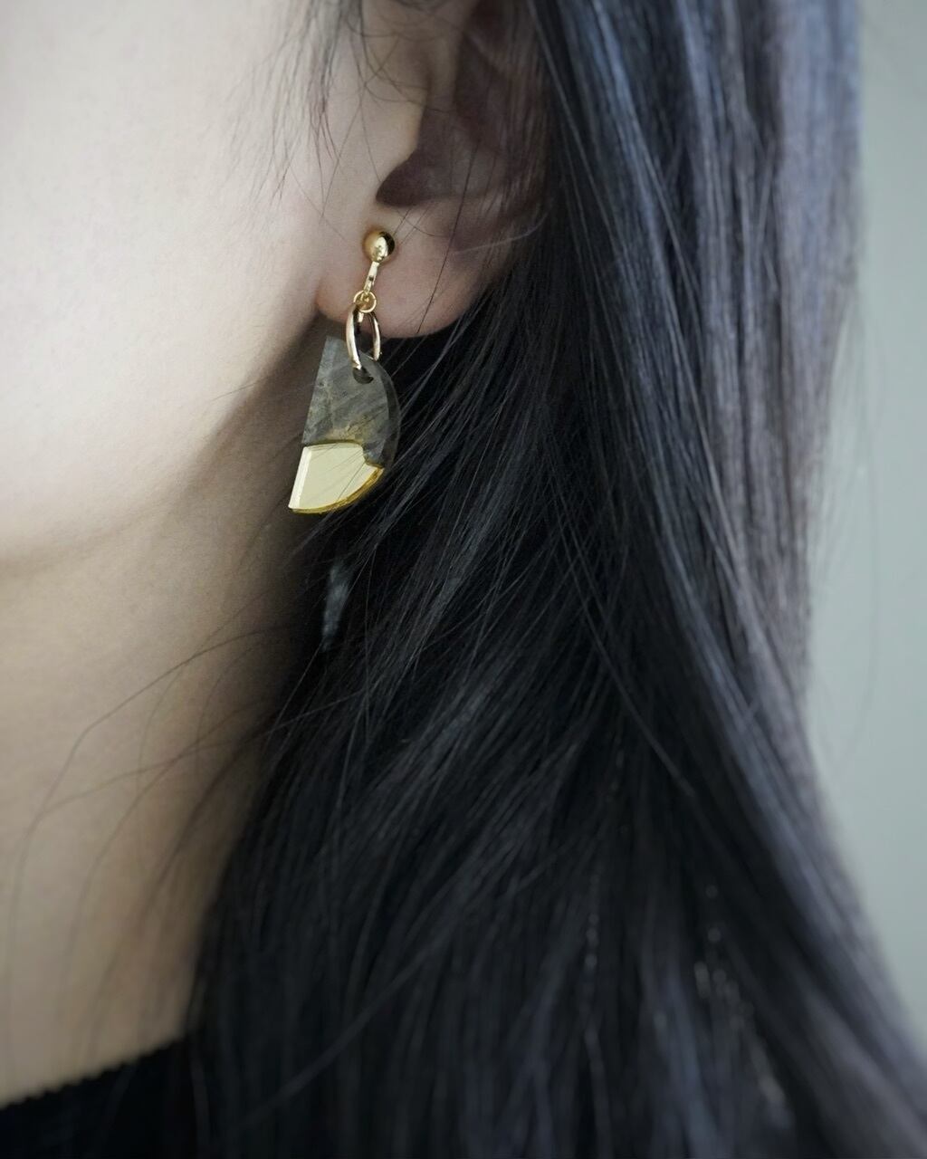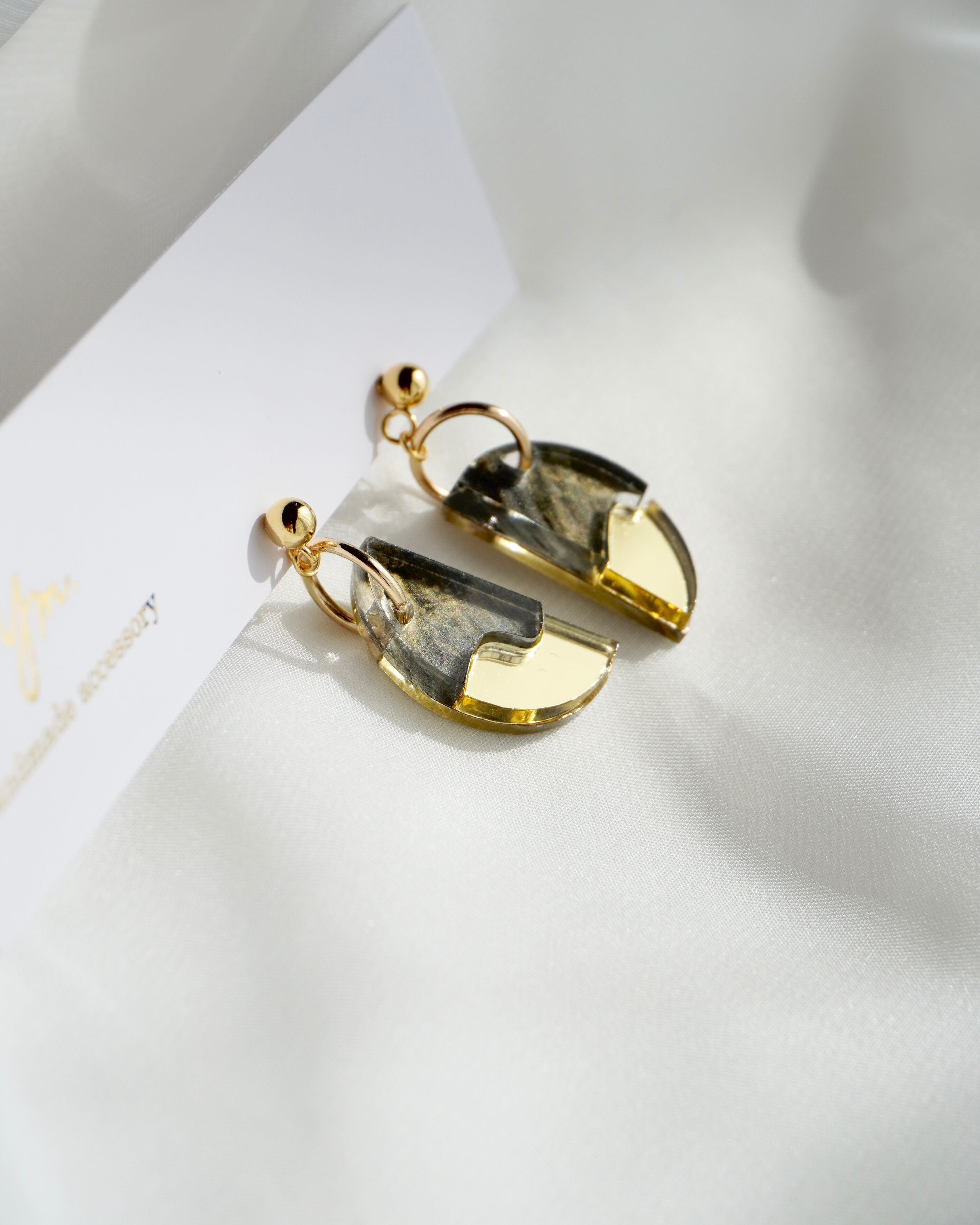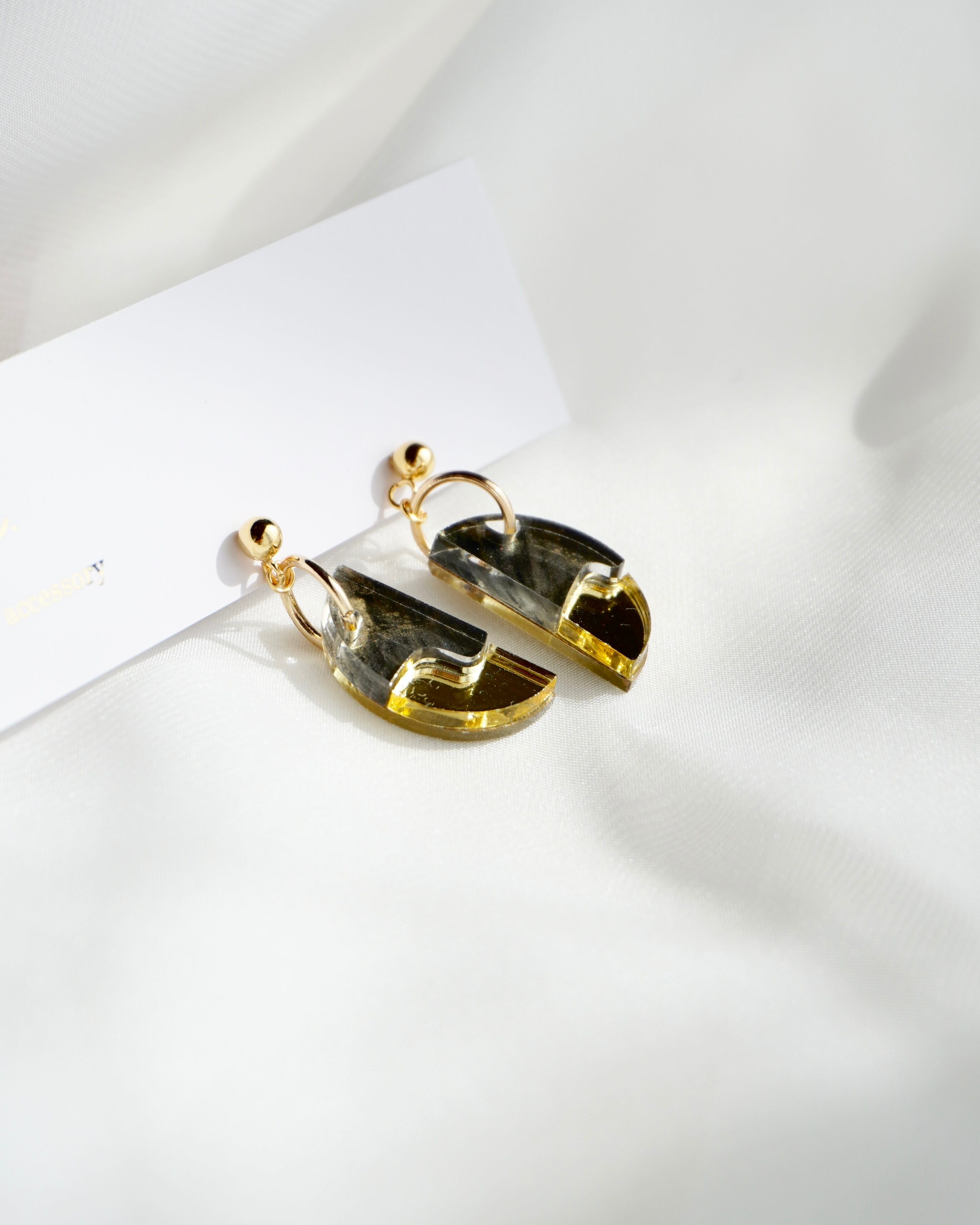 アクセントに月をイメージしたミラーゴールドのアクリルが耳元をぱっと華やかにしてくれます。