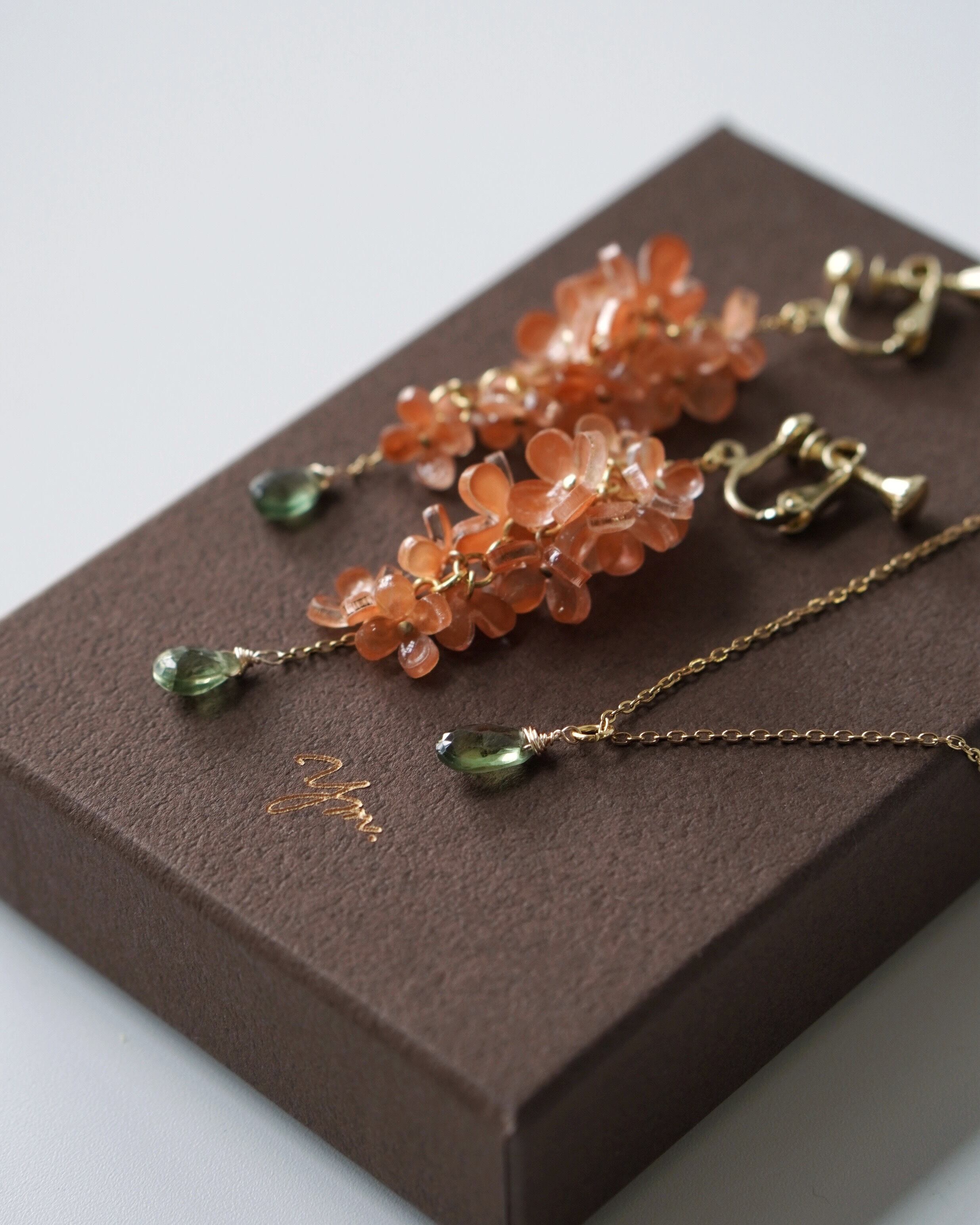 ネックレスのみで、また耳飾りとセットでお使いいただくのもおすすめです。