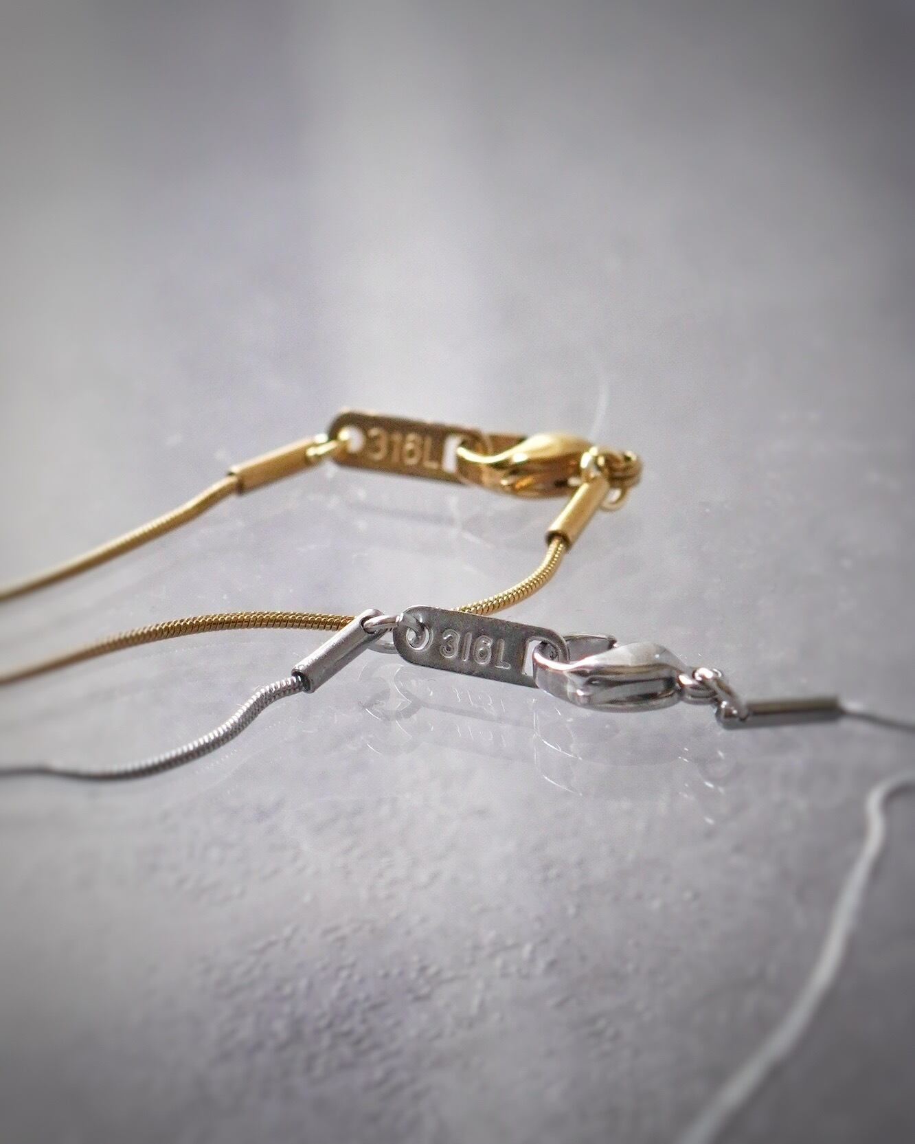 サージカルステンレスチェーンを使用しているため変色しにくい仕様となっています。