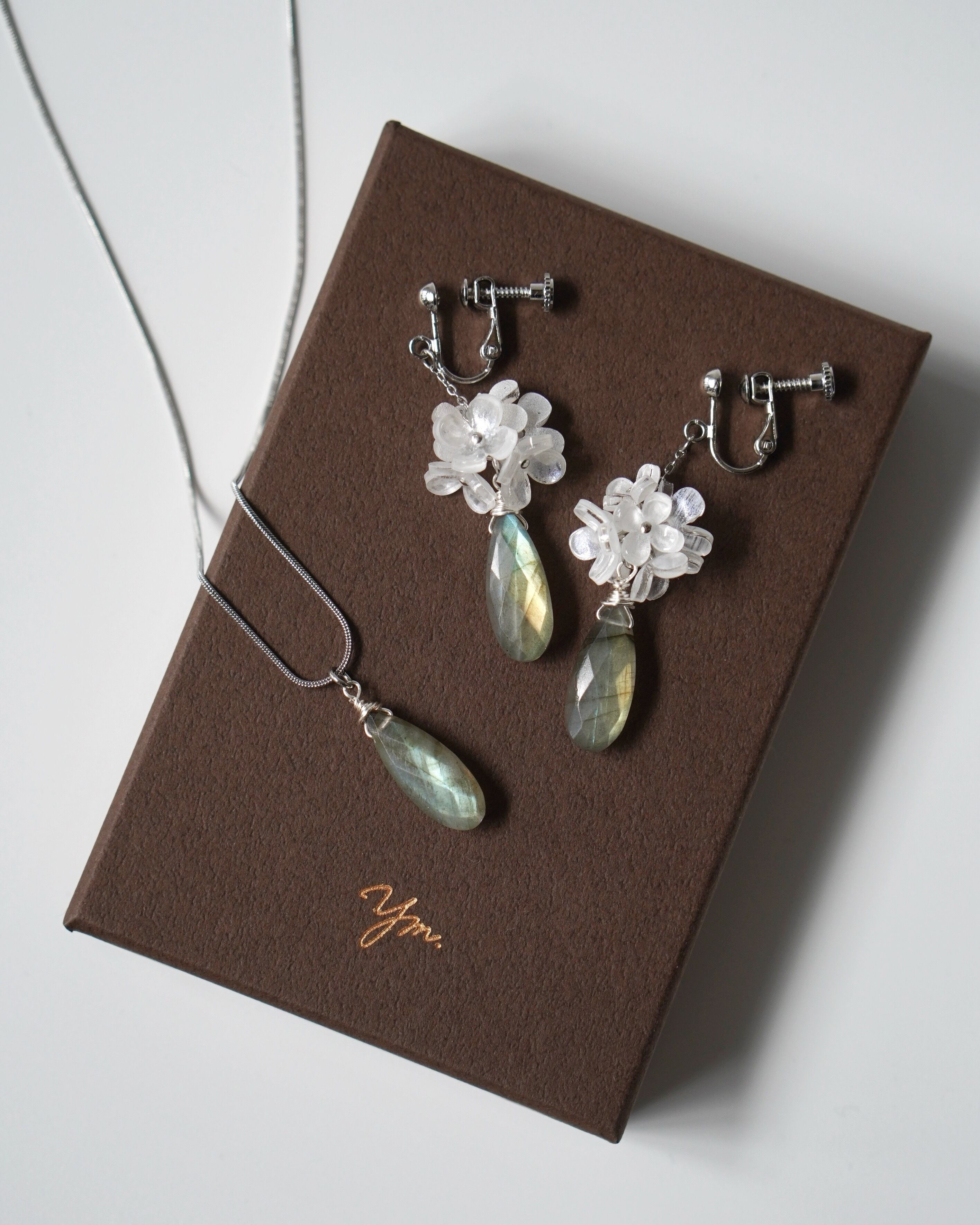 ネックレスのみで、また耳飾りとセットでお使いいただくのもおすすめです。