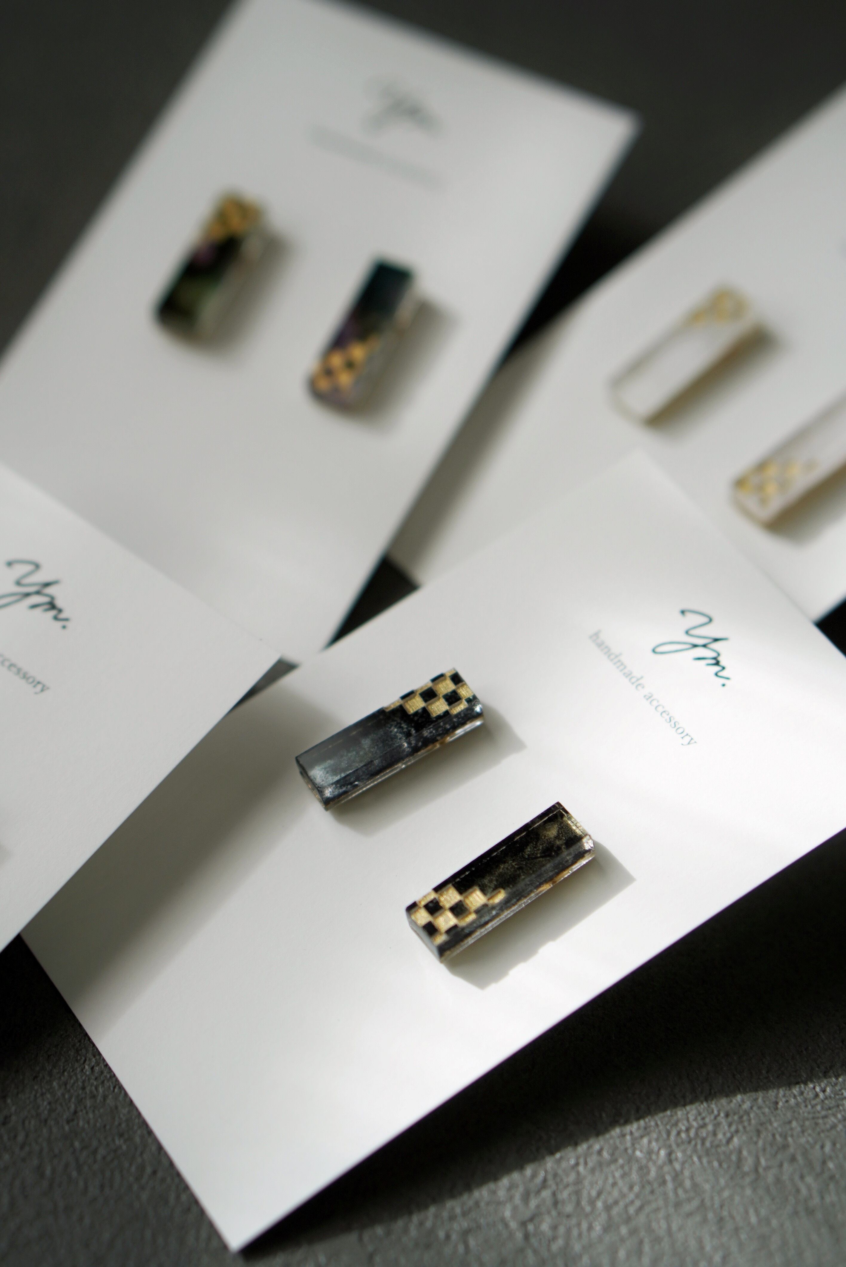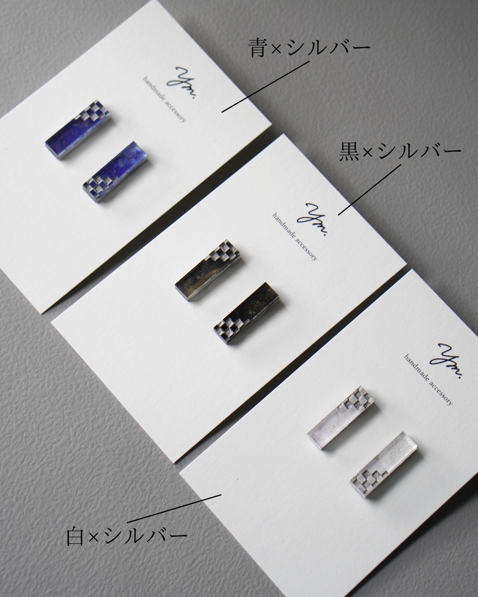 長方形に市松模様をあしらった上品でシンプルな耳飾り。