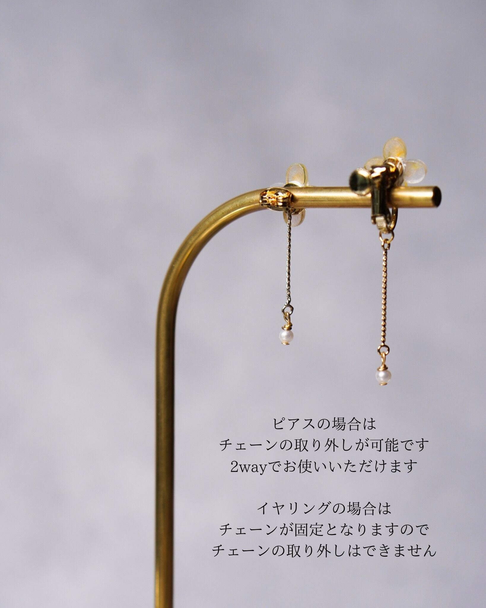 ピアスとイヤリングでは着用時、チェーンの長さの見た目が異なります。